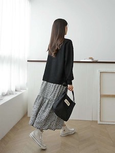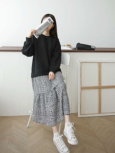 플로럴 배색으로 골지 니트 맨투맨 스타일의 벌룬소매 상의와 ~ 하의는 셔링 디테일의 캉캉스타일의 러블리한 플로럴패턴의 스커트로