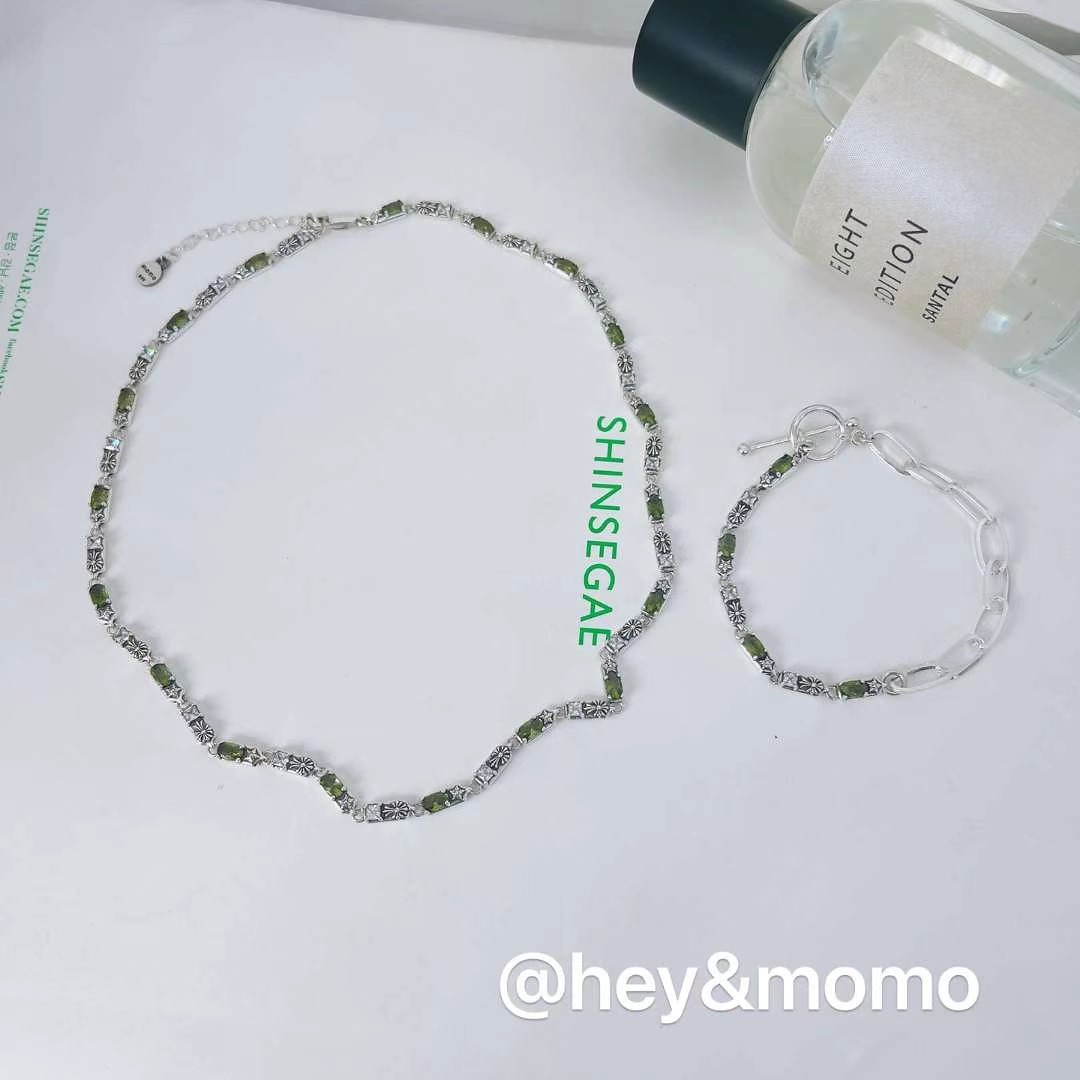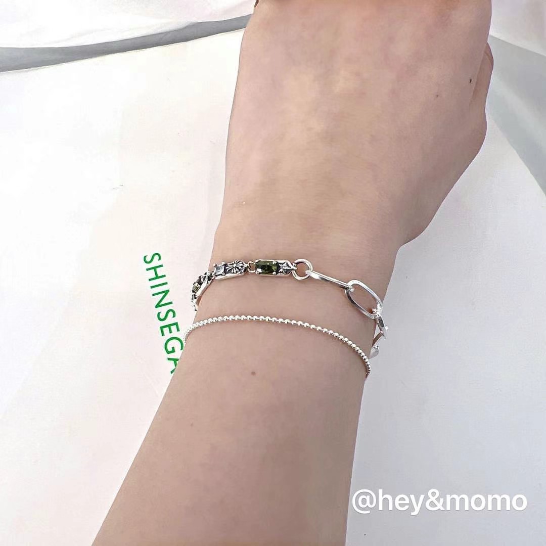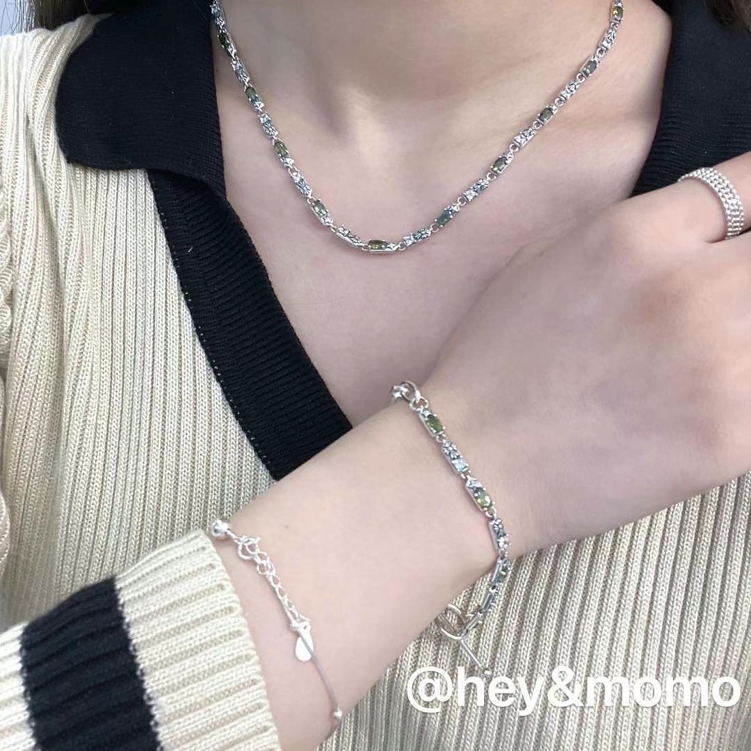 图款 ⚪️925银 绿晶石克罗镶钻拼接别针链 OT手链 32000