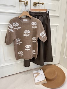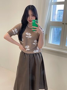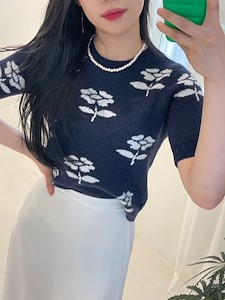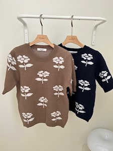 (FW가을신상)플라워니트)반팔,티,꽃,나염,포인트,라운드,귀여움