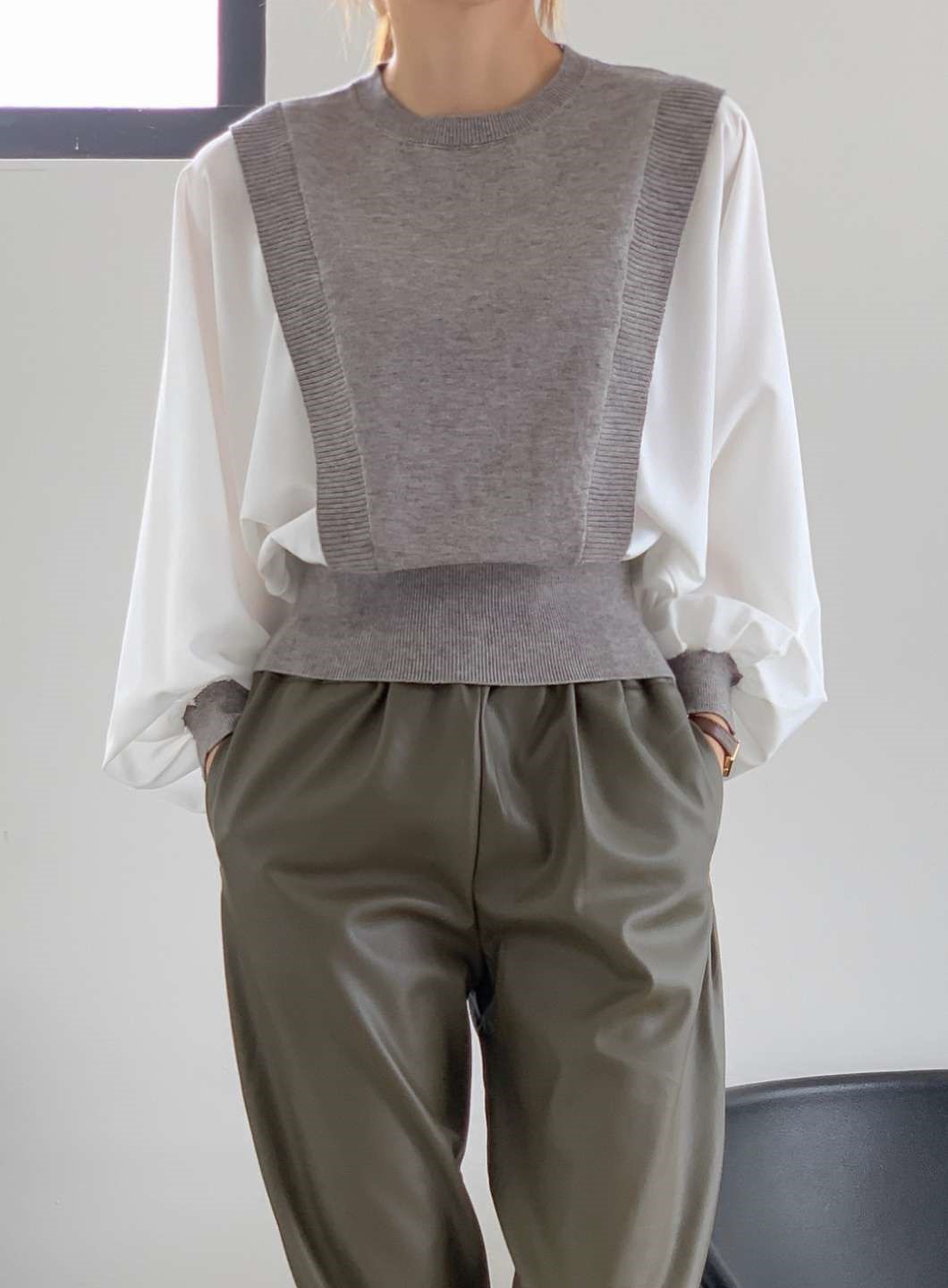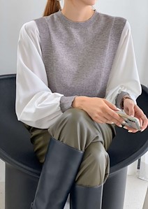 레어 니트 블라우스