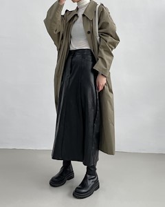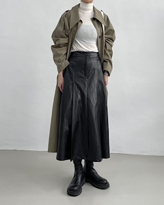 레더맞주름밴딩스커트