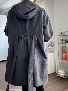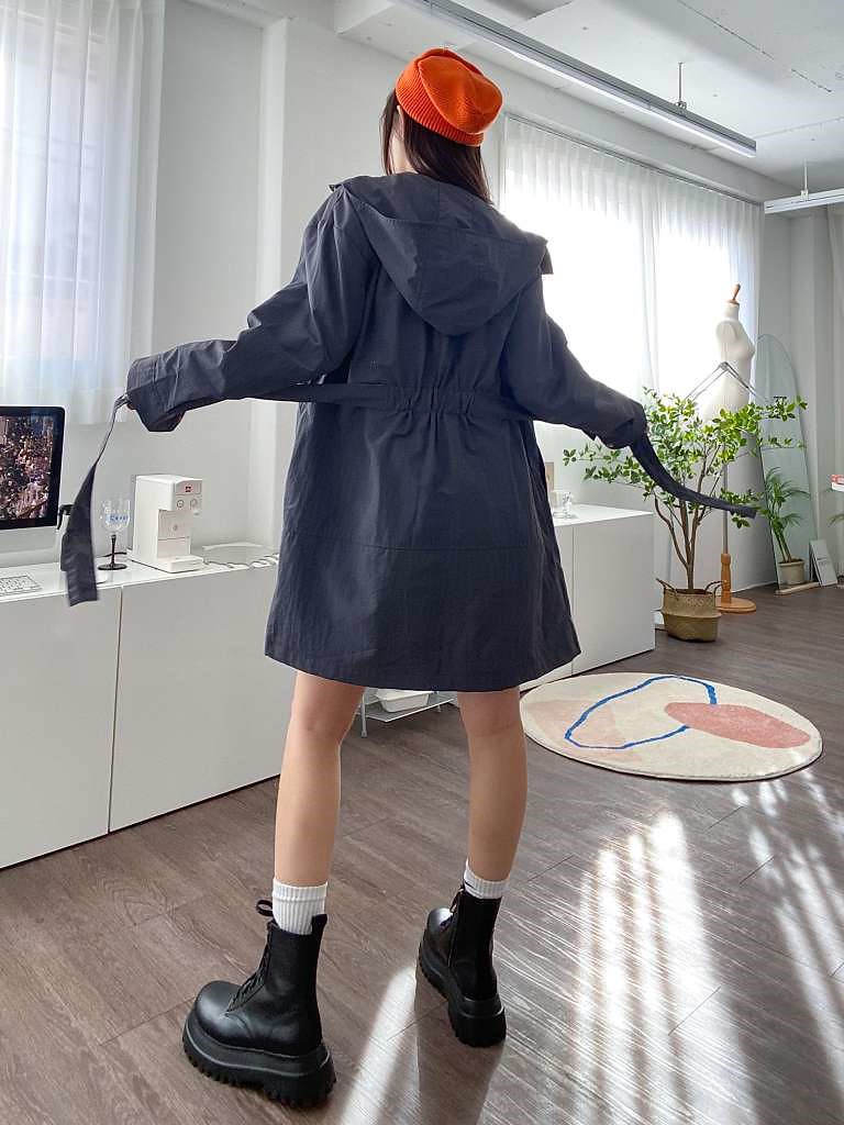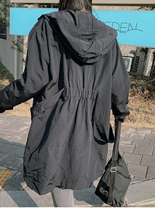 프라다스타일 후드 사파리로 점퍼로도 캐주얼차림도 가능하며 뒤쪽 허리에 부착된 밴딩과 끈으로 다양한 스타일 연출가능하며 심플하면 디테일이 있는 아우터^^