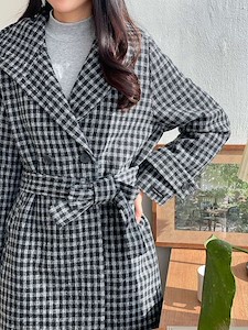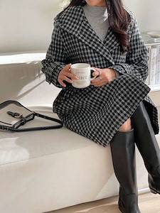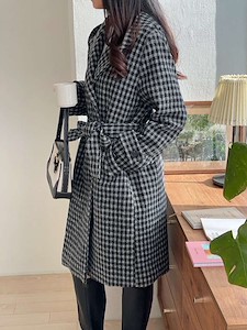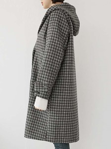 ■ 울 체크 후드 더블 코트