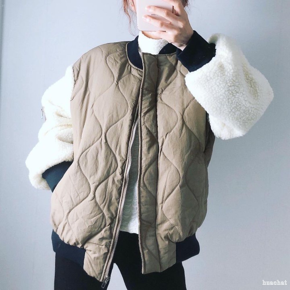 HOT) 양털소매배색패딩