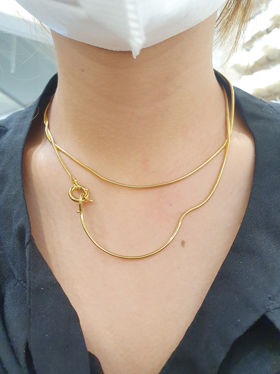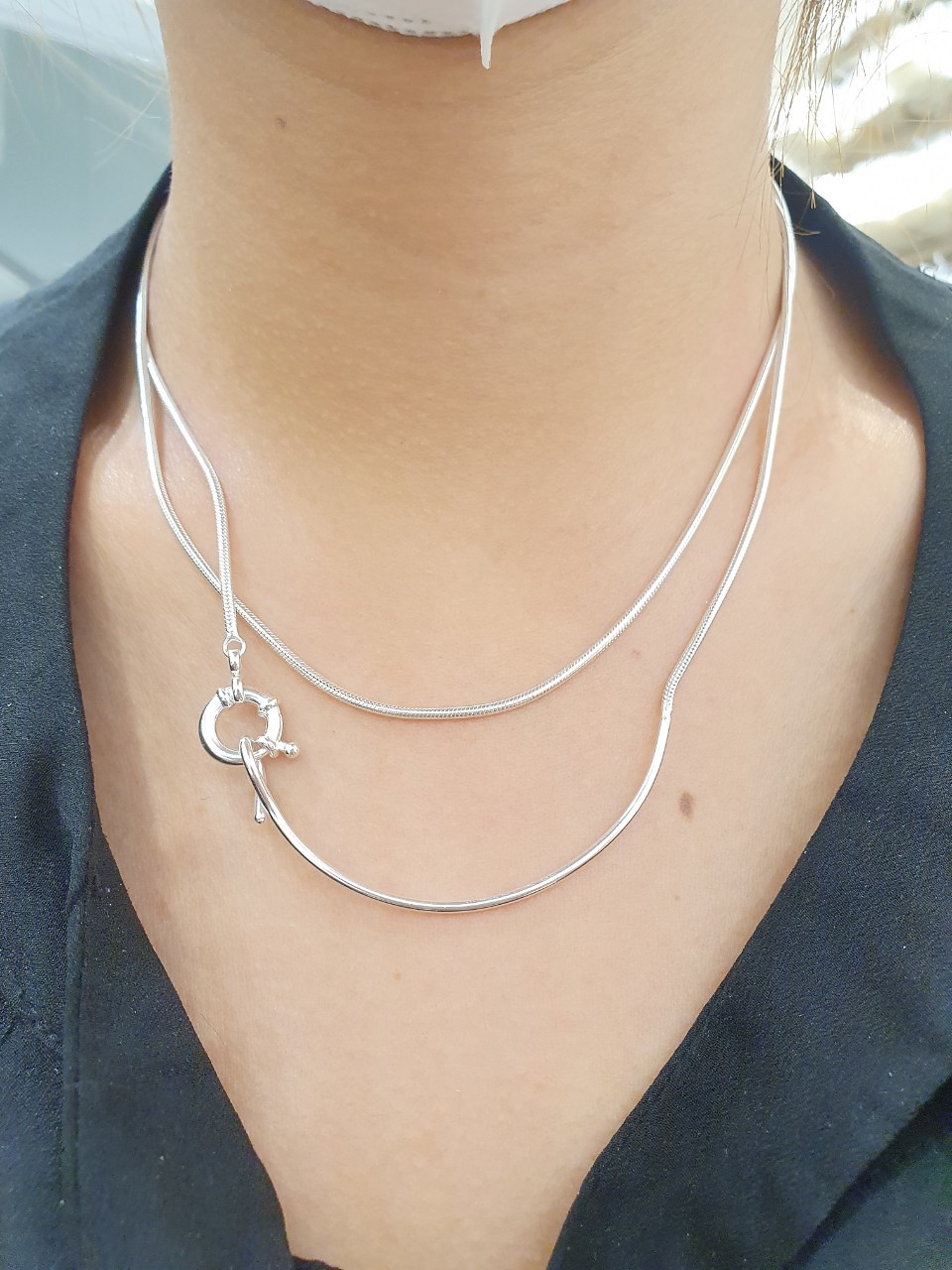 品名:은제품--- 두줄 동글롱뱀줄 목걸이