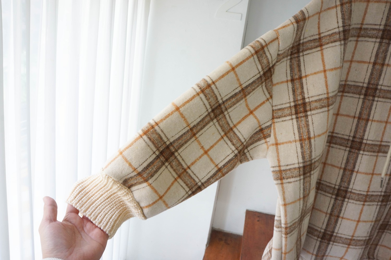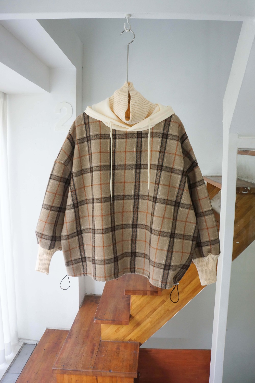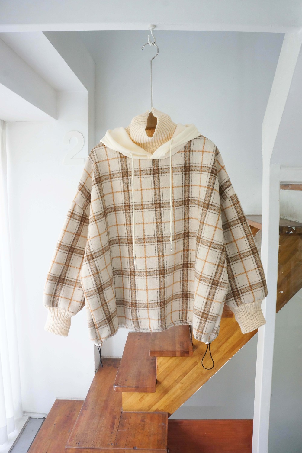 品名:N2)후드체크티#겨울신상 ◎※☞颜色:연베, 진베 ◎※☞尺寸:FREE ◎※☞材质:腈纶 30%,聚酯 70% 翻译