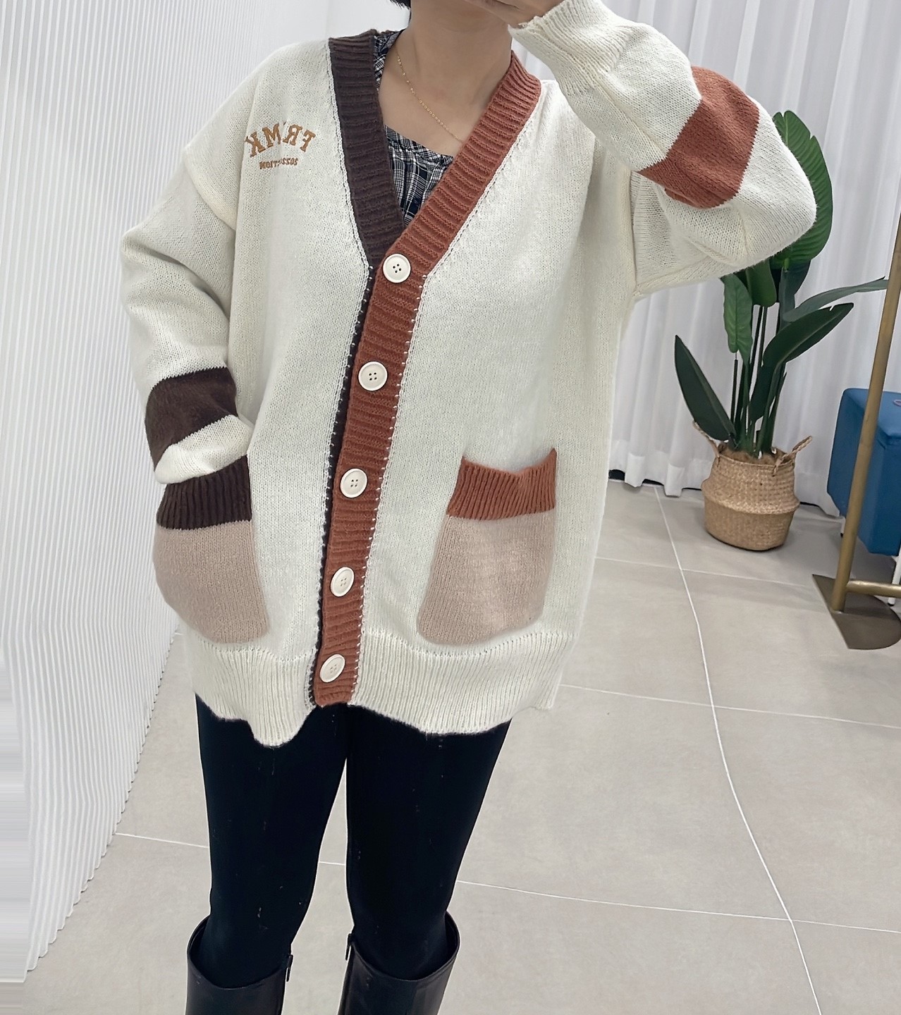 品名:배색포켓가디건 #여성상의캐주얼시크아우터니트브이넥 ◎※☞颜色:네이비, 브라운 ◎※☞尺寸:FREE ◎※☞材质:聚酯 100% 翻译