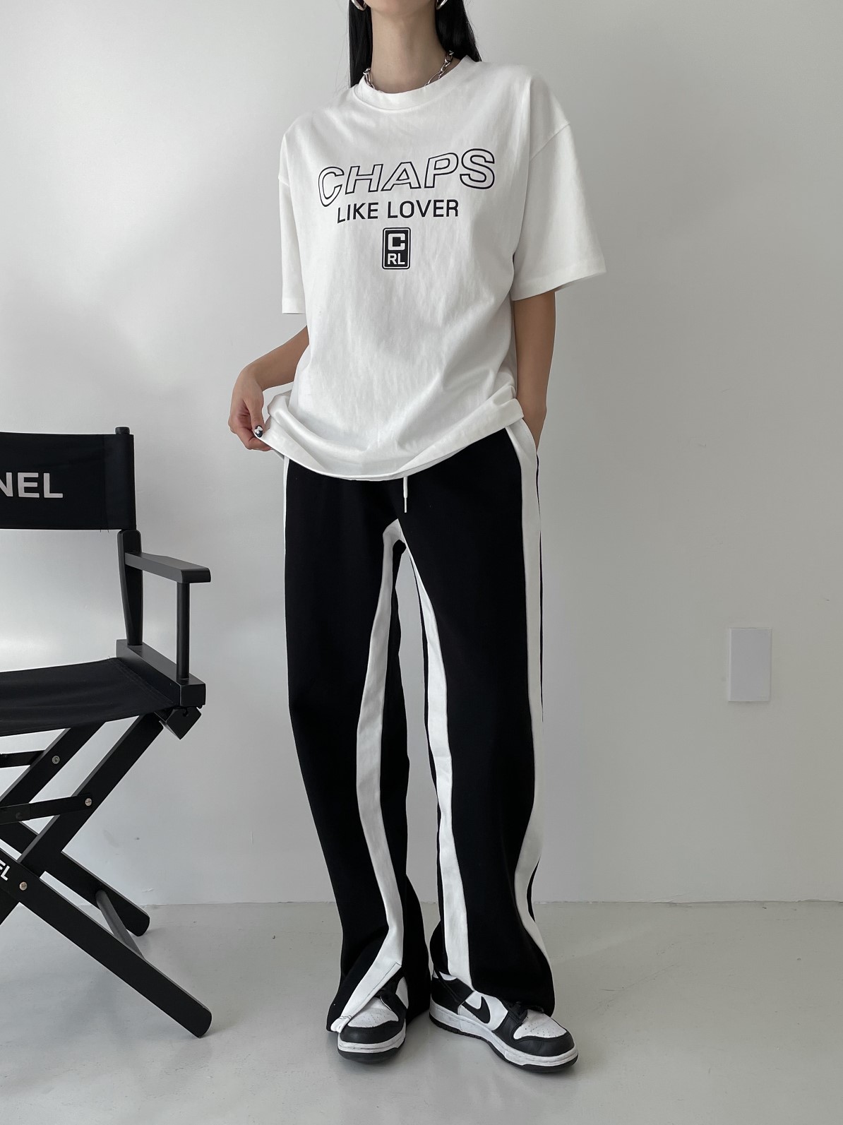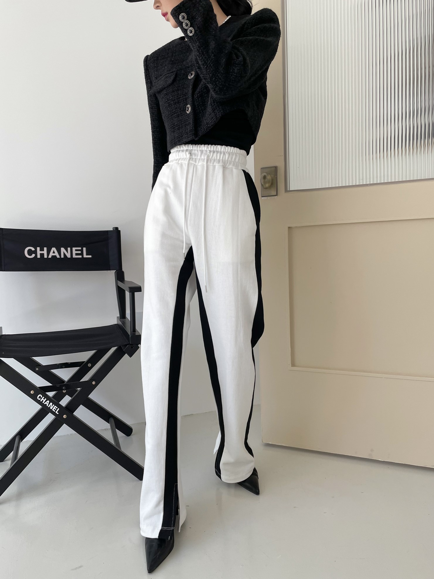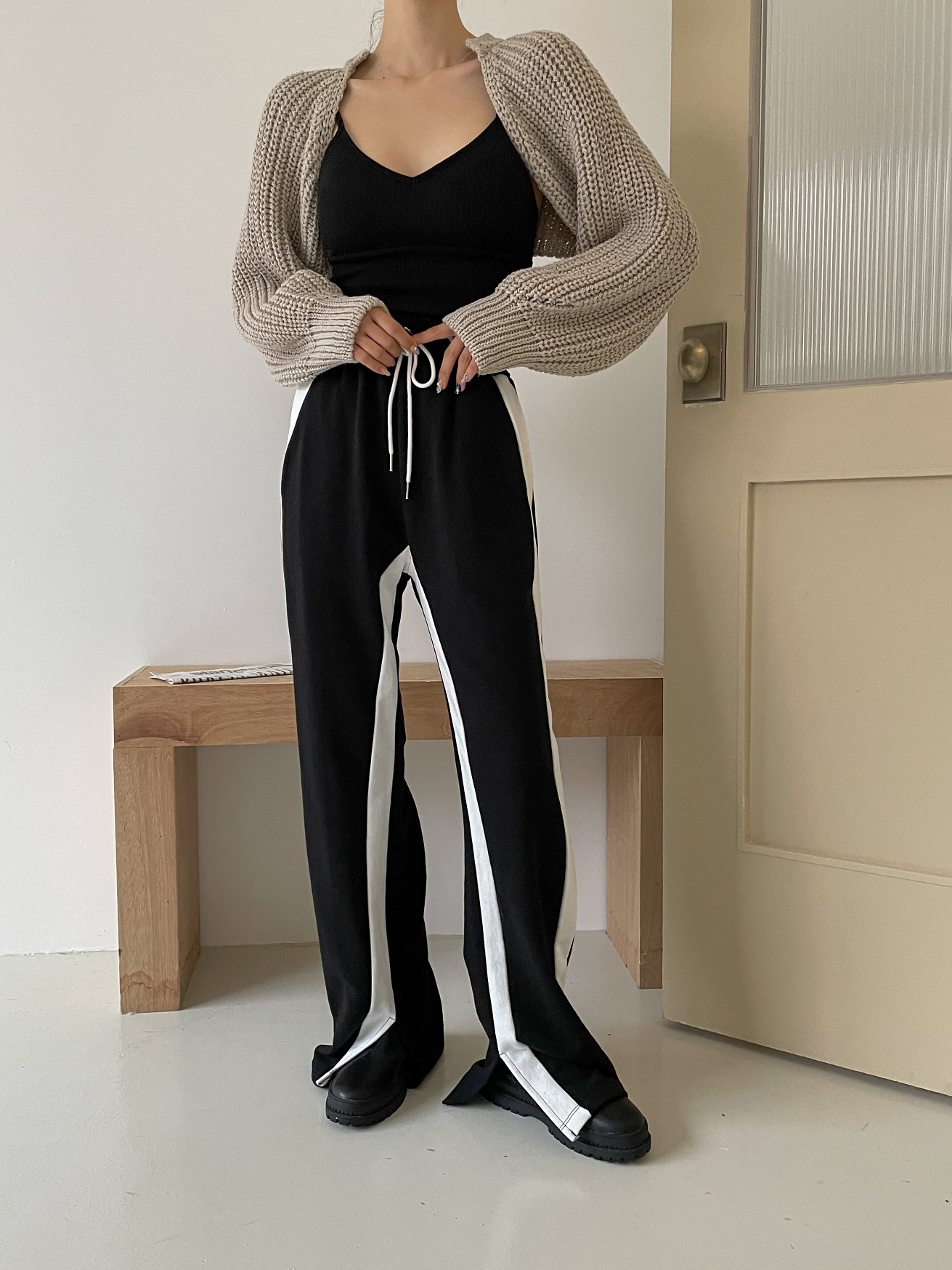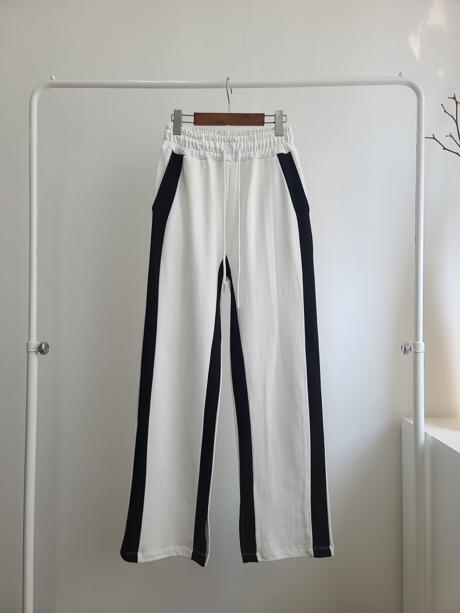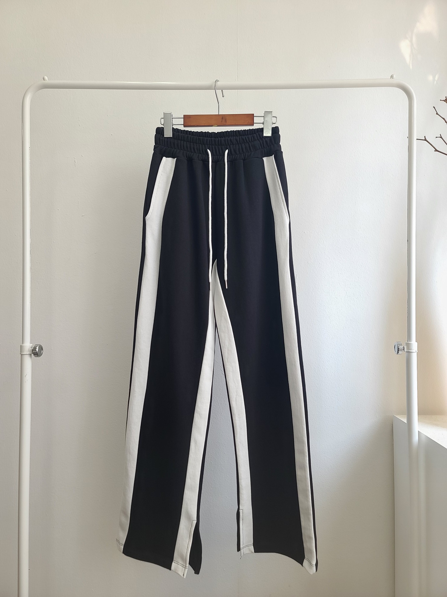品名:투톤 팬츠 ( 쮸리 배색 라인 일자 와이드 츄리닝 바지 ◎※☞颜色:블랙, 아이보리 ◎※☞尺寸:FREE ◎※☞材质:纯棉 100% ◎※☞注意事项:只能干洗,只能手洗,不能手洗,机洗,不能使用漂白剂,不能烘干,不能熨烫,不能曲折