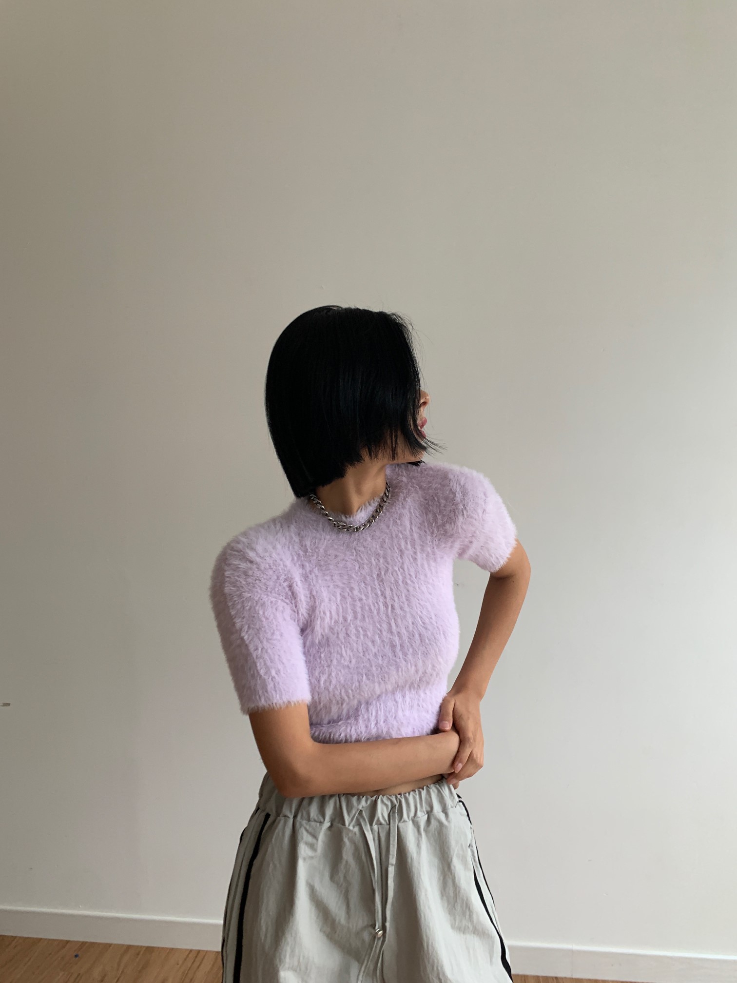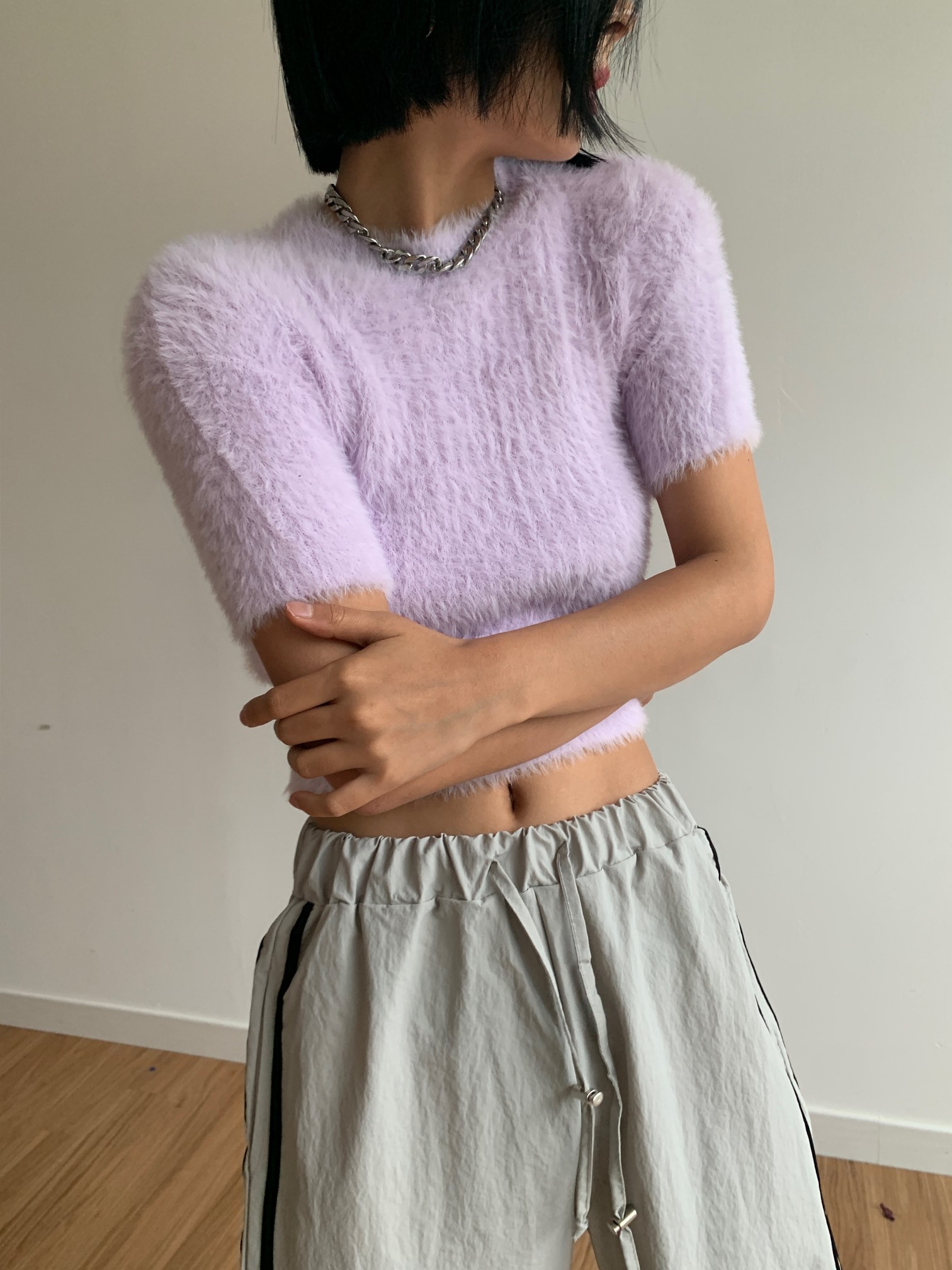 品名:솜사탕 니트 ( 크롭 반팔 퍼 앙고라 밍크 knit ◎※☞颜色:민트, 보라, 아이보리, 핑크 ◎※☞尺寸:FREE ◎※☞材质:尼龙 100% ◎※☞注意事项:只能干洗,只能手洗,不能手洗,机洗,不能使用漂白剂,不能烘干,不能熨烫,不能曲折