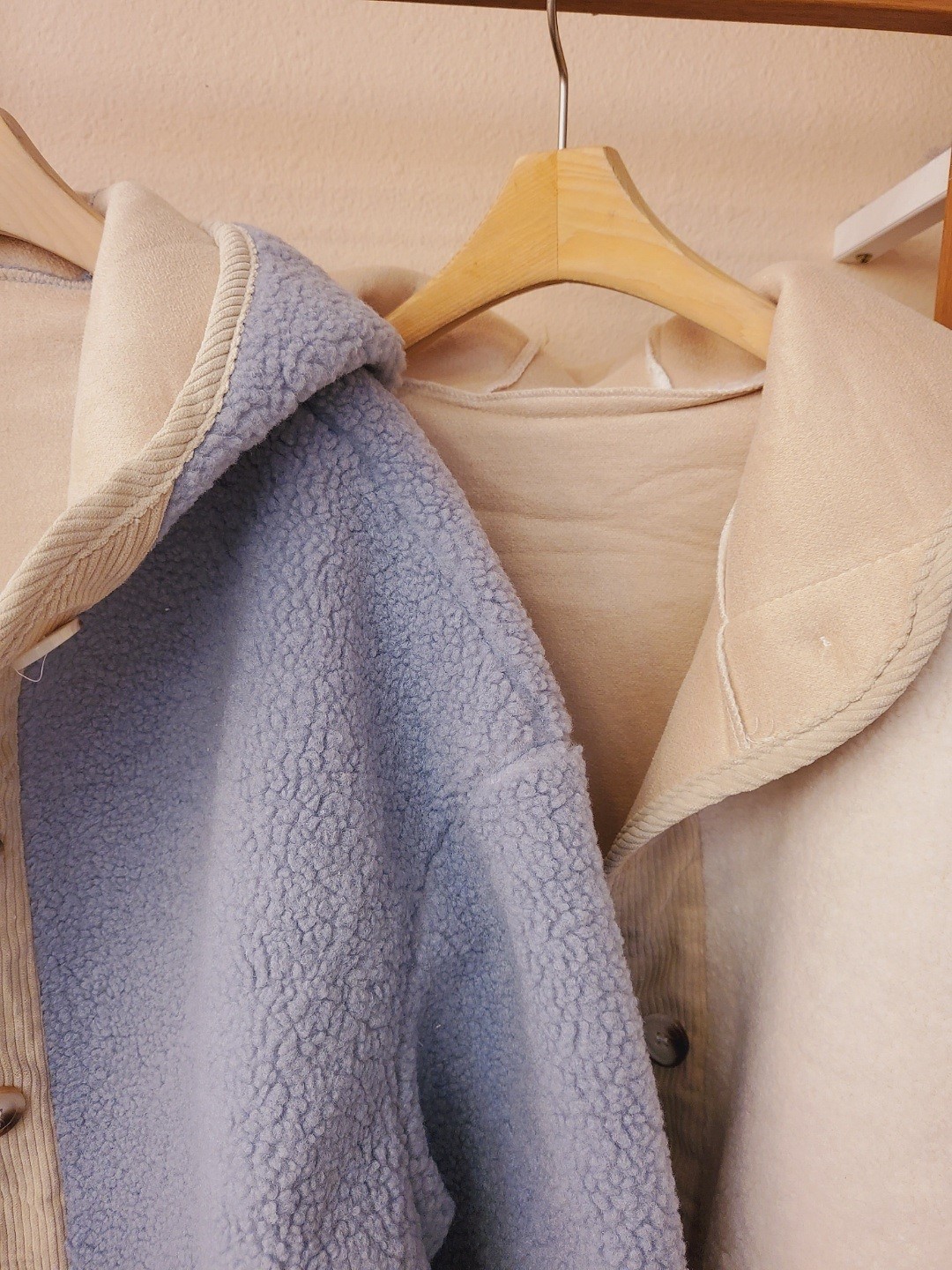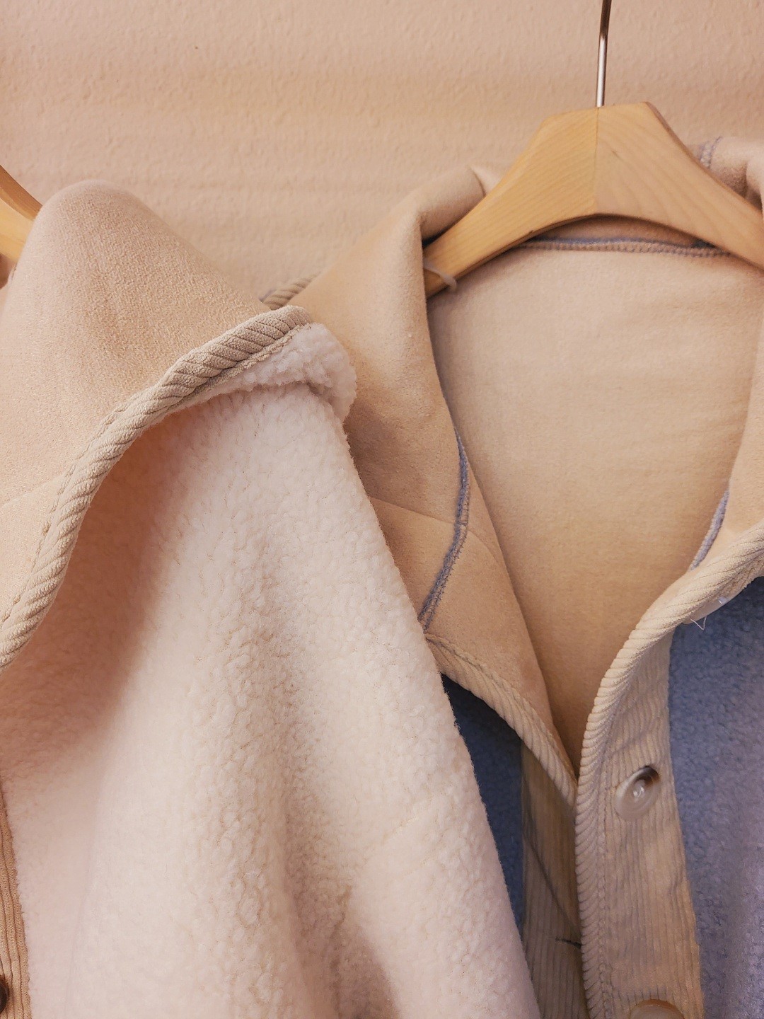 品名:덤블 후드무스탕 ◎※☞颜色:소라, 아이보리 ◎※☞尺寸:FREE ◎※☞材质:聚酯 100% 翻译