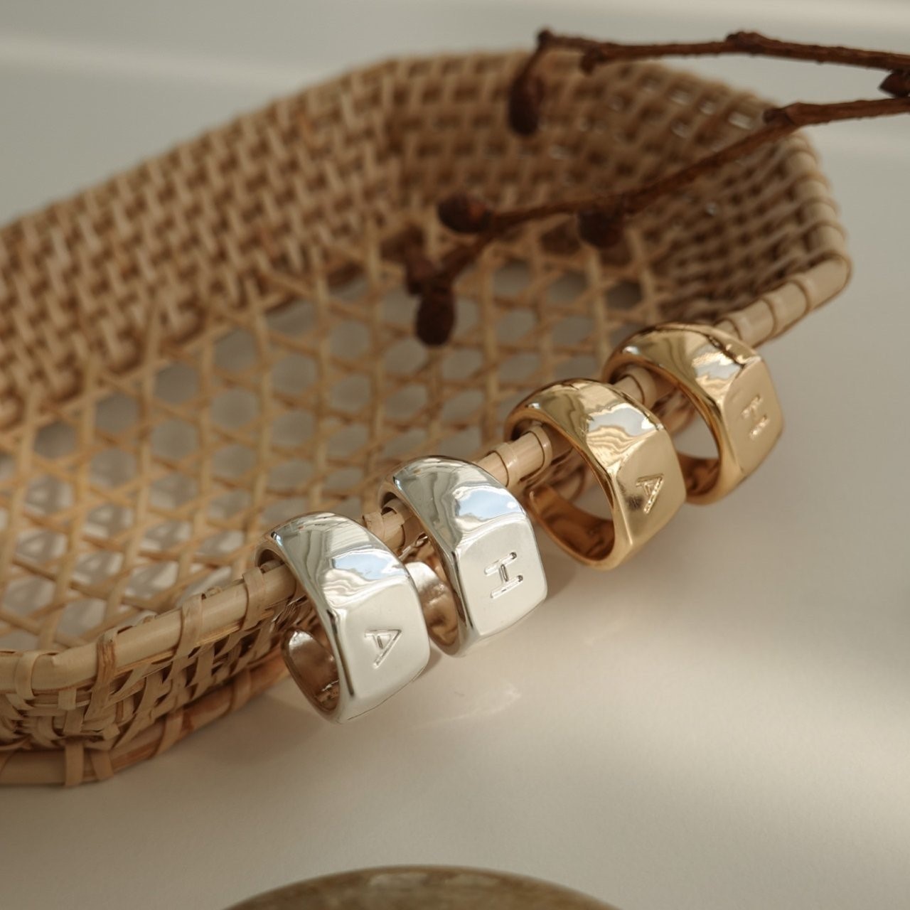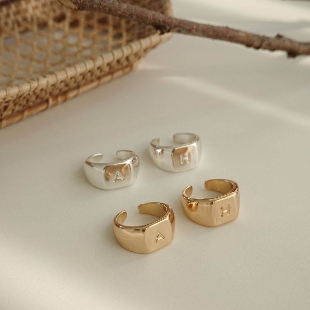 品名:R1320 이니셜 볼드 반지 ◎※☞颜色:A골드, A실버, H골드, H실버 ◎※☞尺寸:FREE ◎※☞材质:镀金 0% 翻译