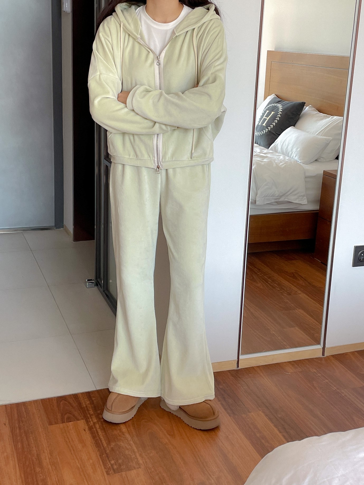 品名:벨로아ZU #트레이닝세트 #벨벳 ◎※☞颜色:먹색, 민트 ◎※☞尺寸:FREE ◎※☞材质:纯棉 100% 翻译