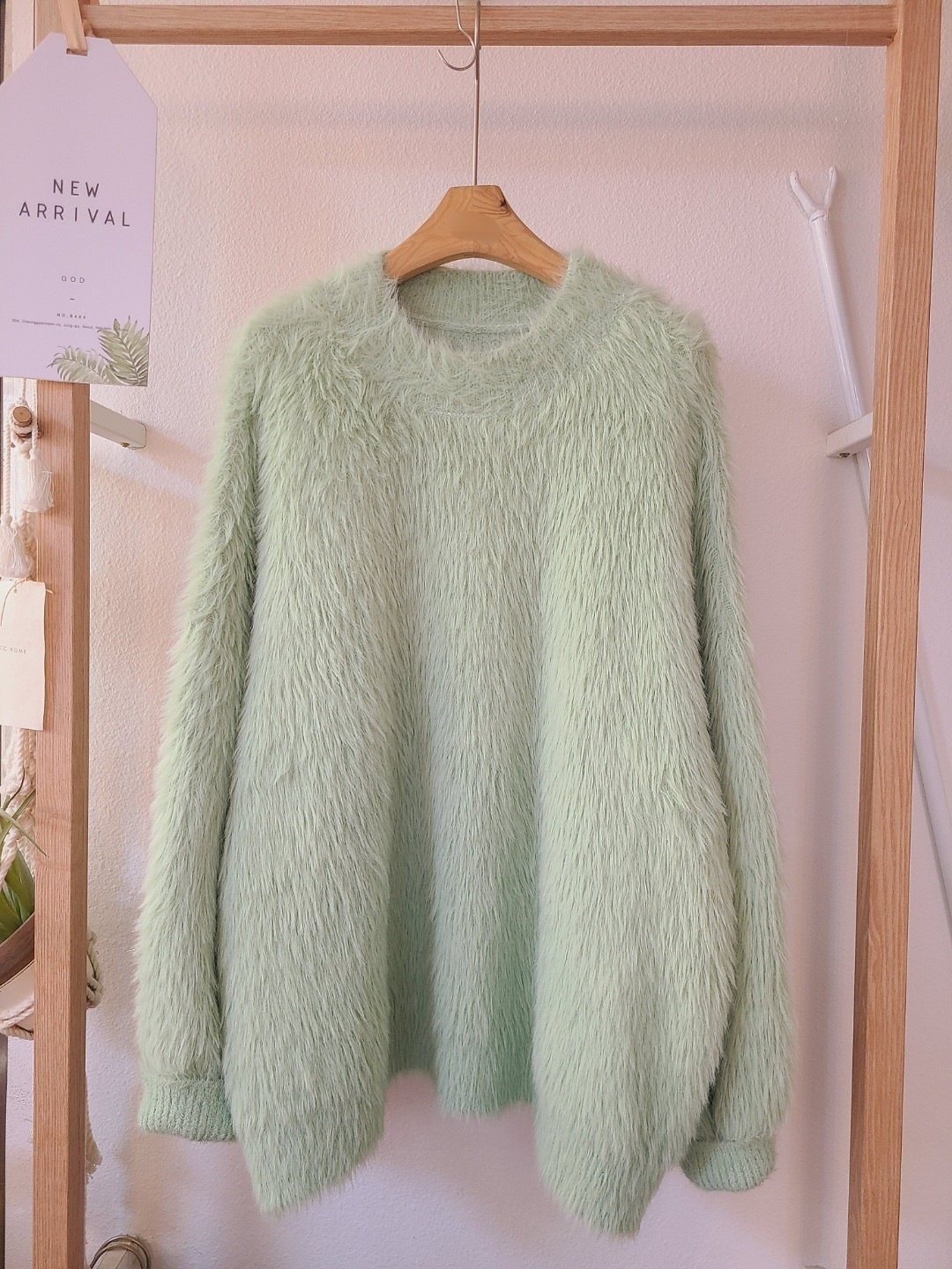 品名:라운드 긴팔니트 ◎※☞颜色:소라, 아이보리, 핑크 ◎※☞尺寸:FREE ◎※☞材质:腈纶 90%,羊毛 10% 翻译