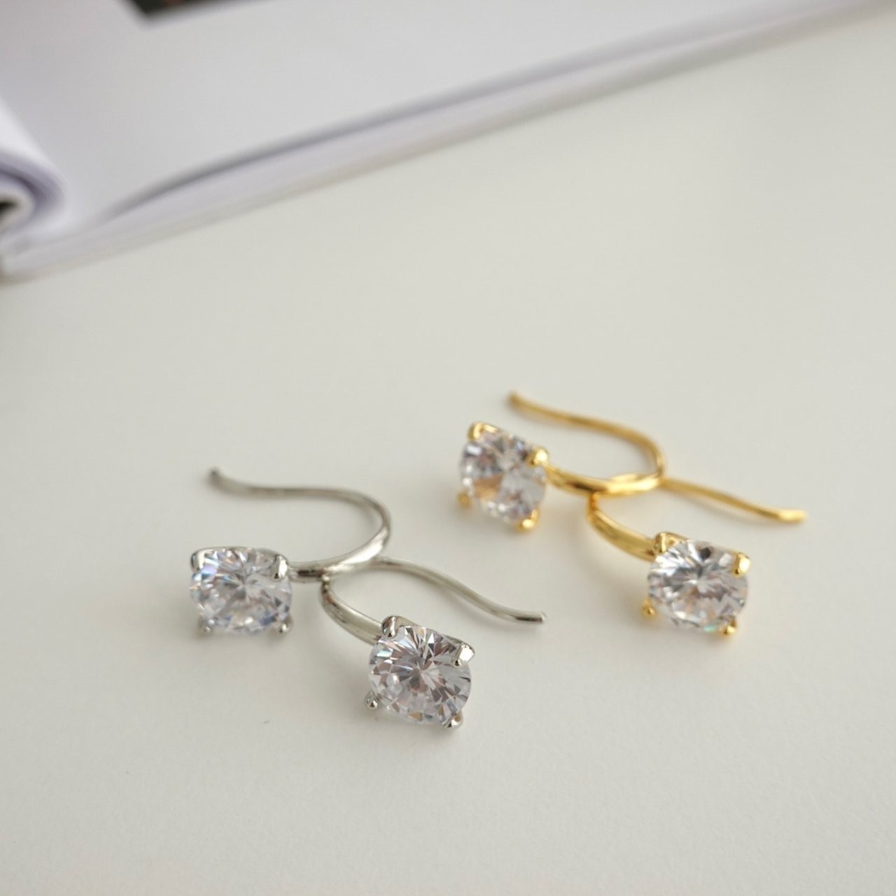 品名:E1866 큐빅 귀걸이 ◎※☞颜色:골드, 실버 ◎※☞尺寸:FREE ◎※☞材质:镀金 0% 翻译