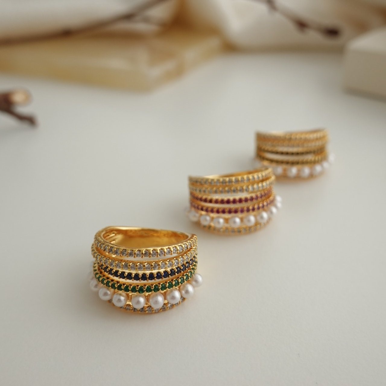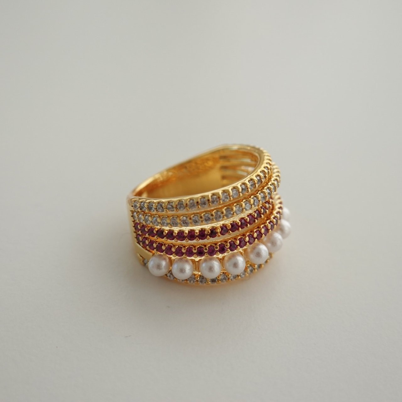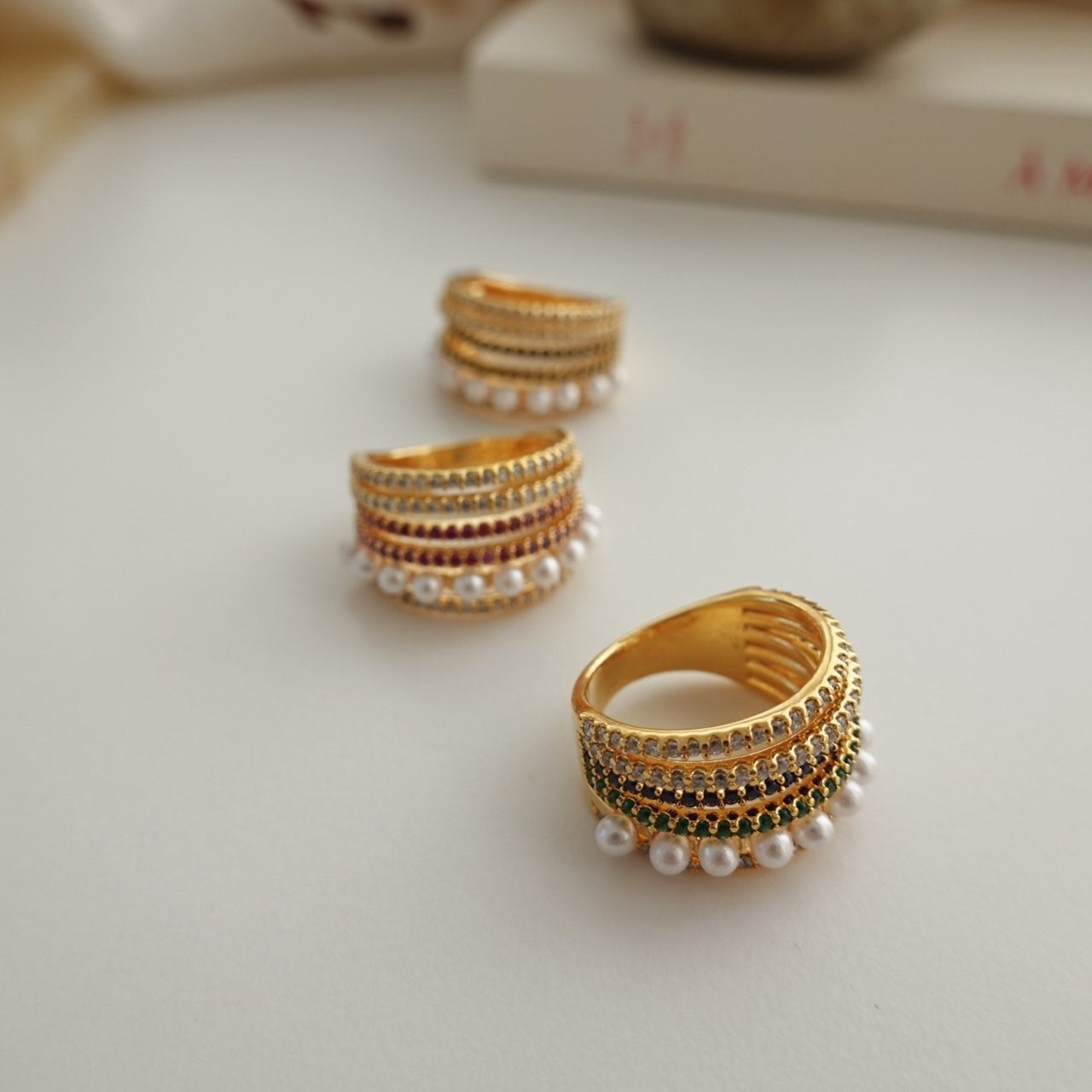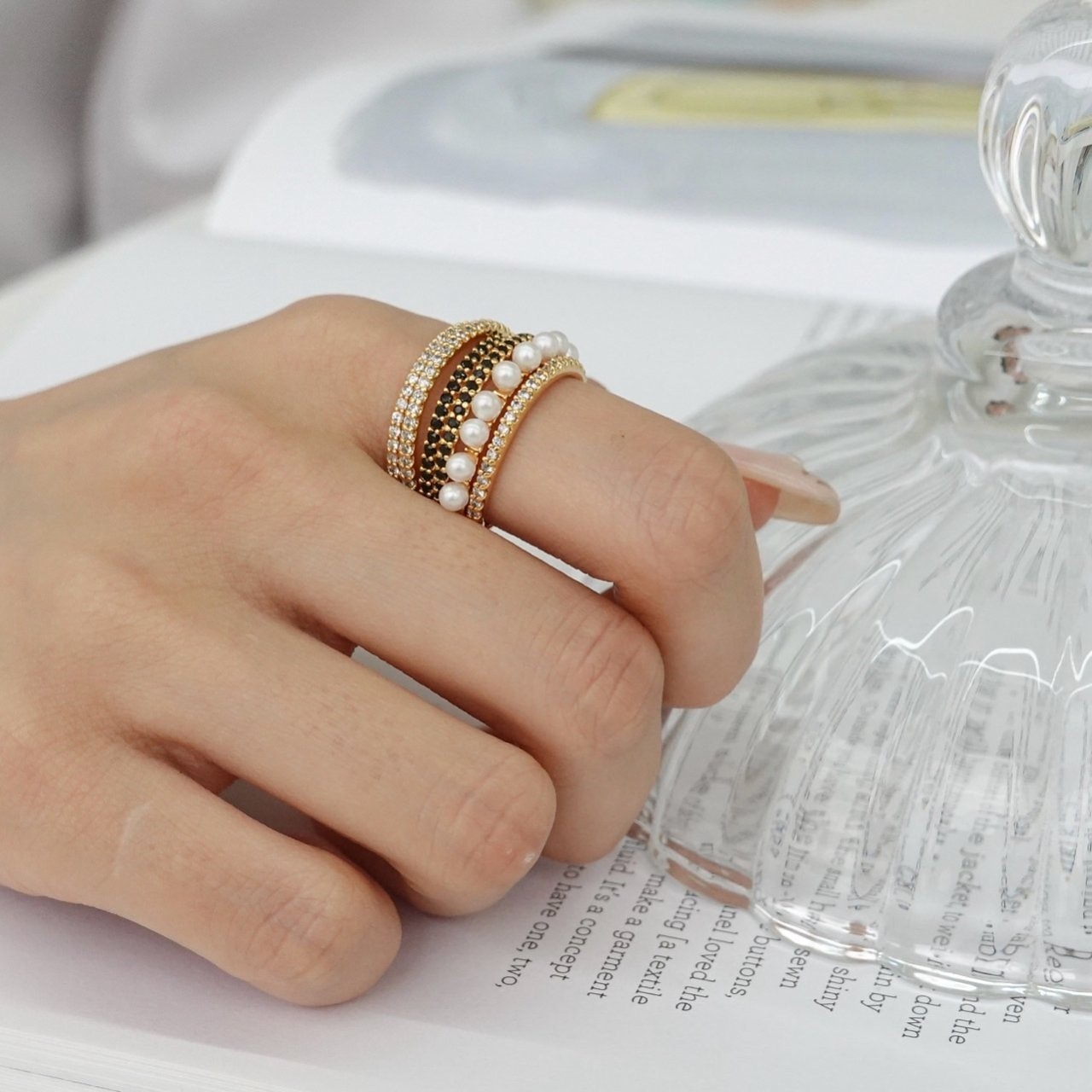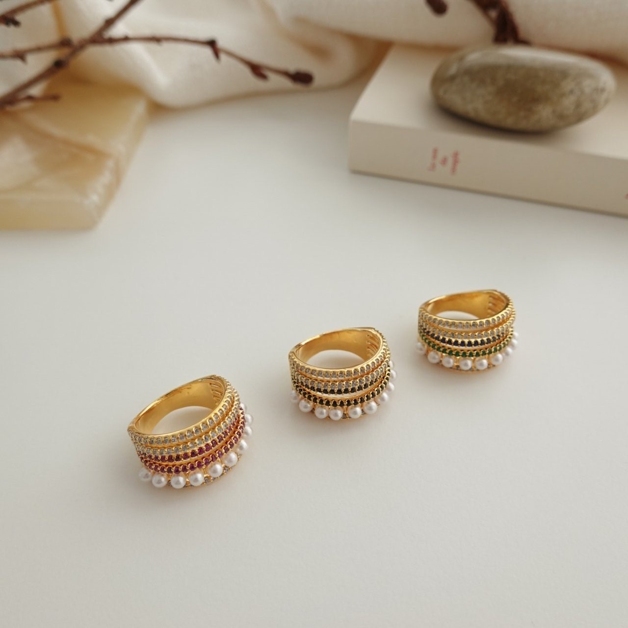 品名:R1326 지르코니아 큐빅 진주 반지 (24k 골드도금) ◎※☞颜色:그린, 블랙, 핑크 ◎※☞尺寸:FREE ◎※☞材质:镀金 0% 翻译