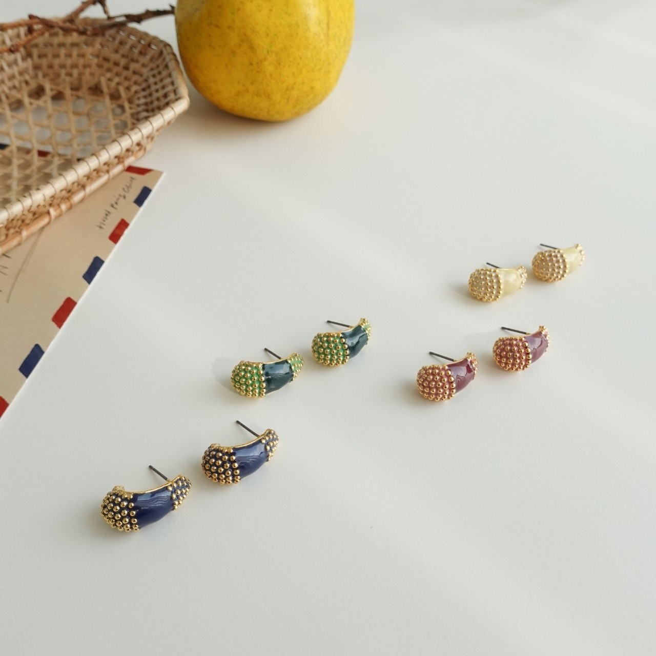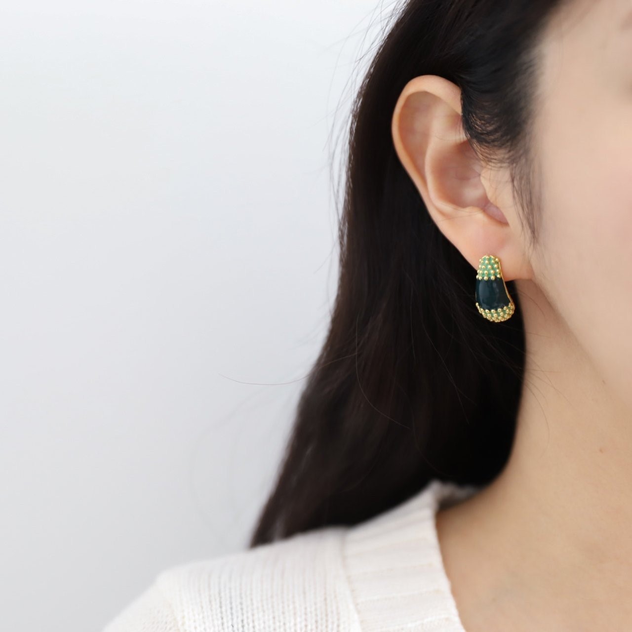 品名:E1845 귀걸이 ◎※☞颜色:그린, 블루, 아이보리, 와인 ◎※☞尺寸:FREE ◎※☞材质:镀金 0% 翻译