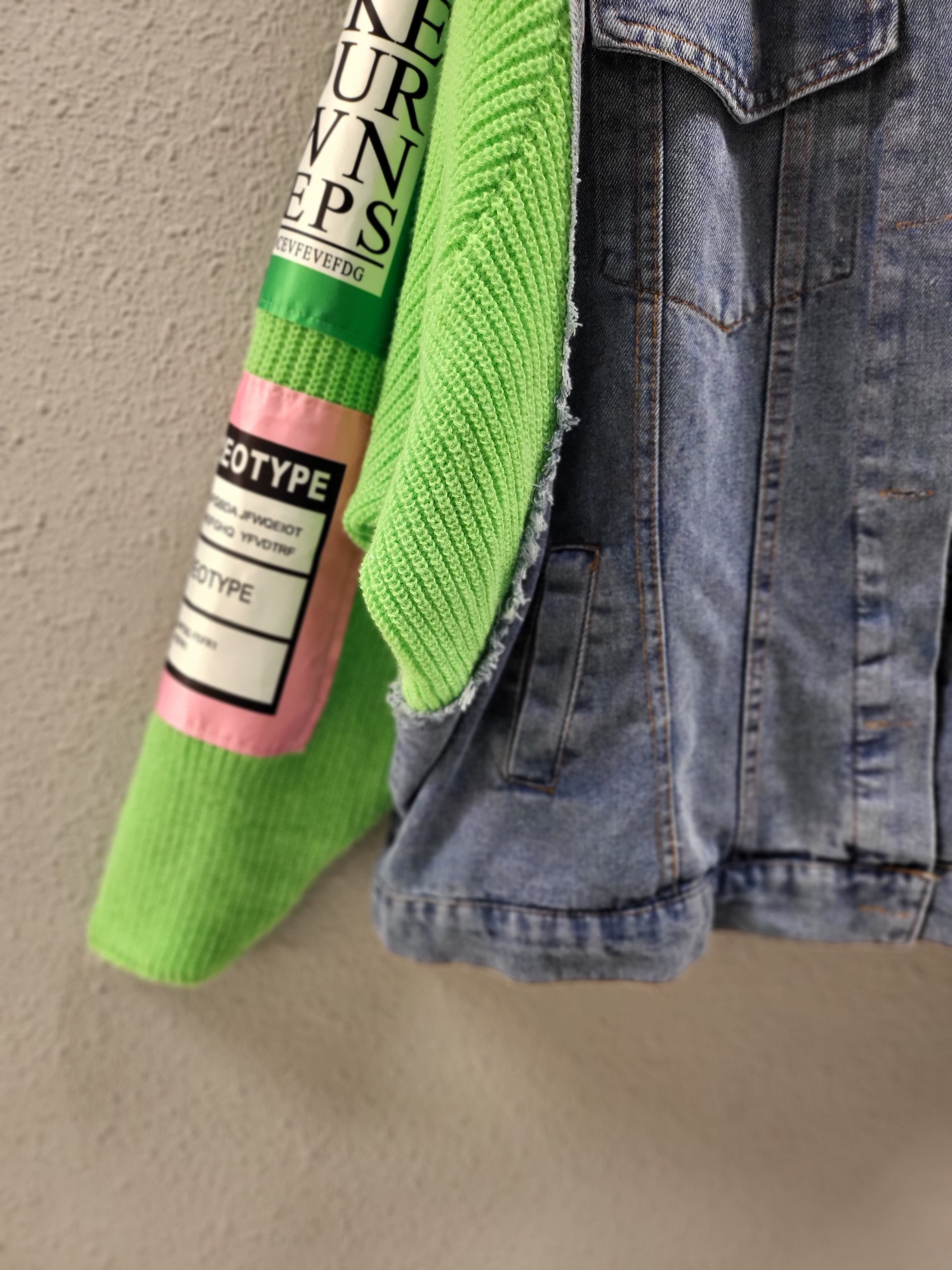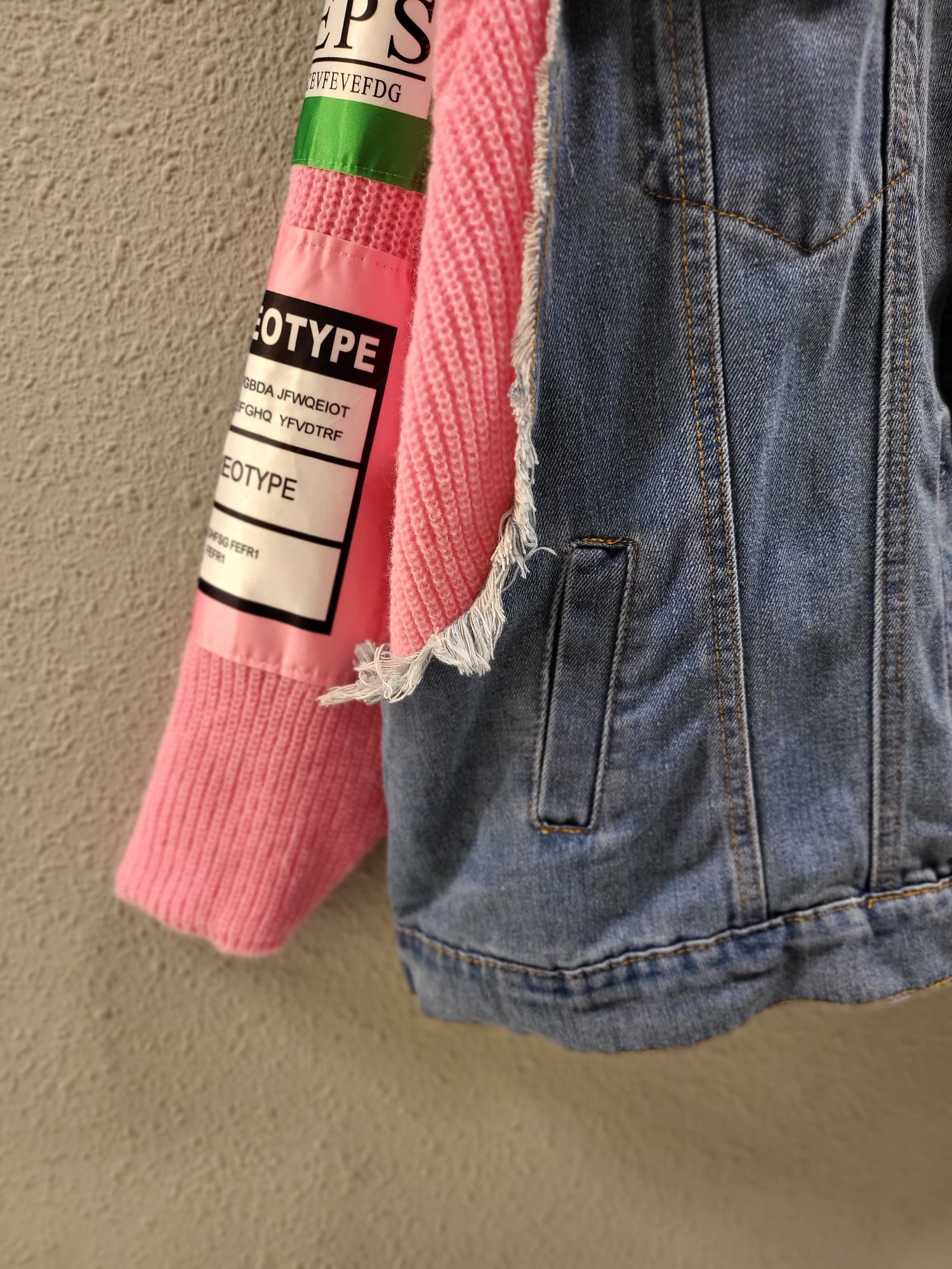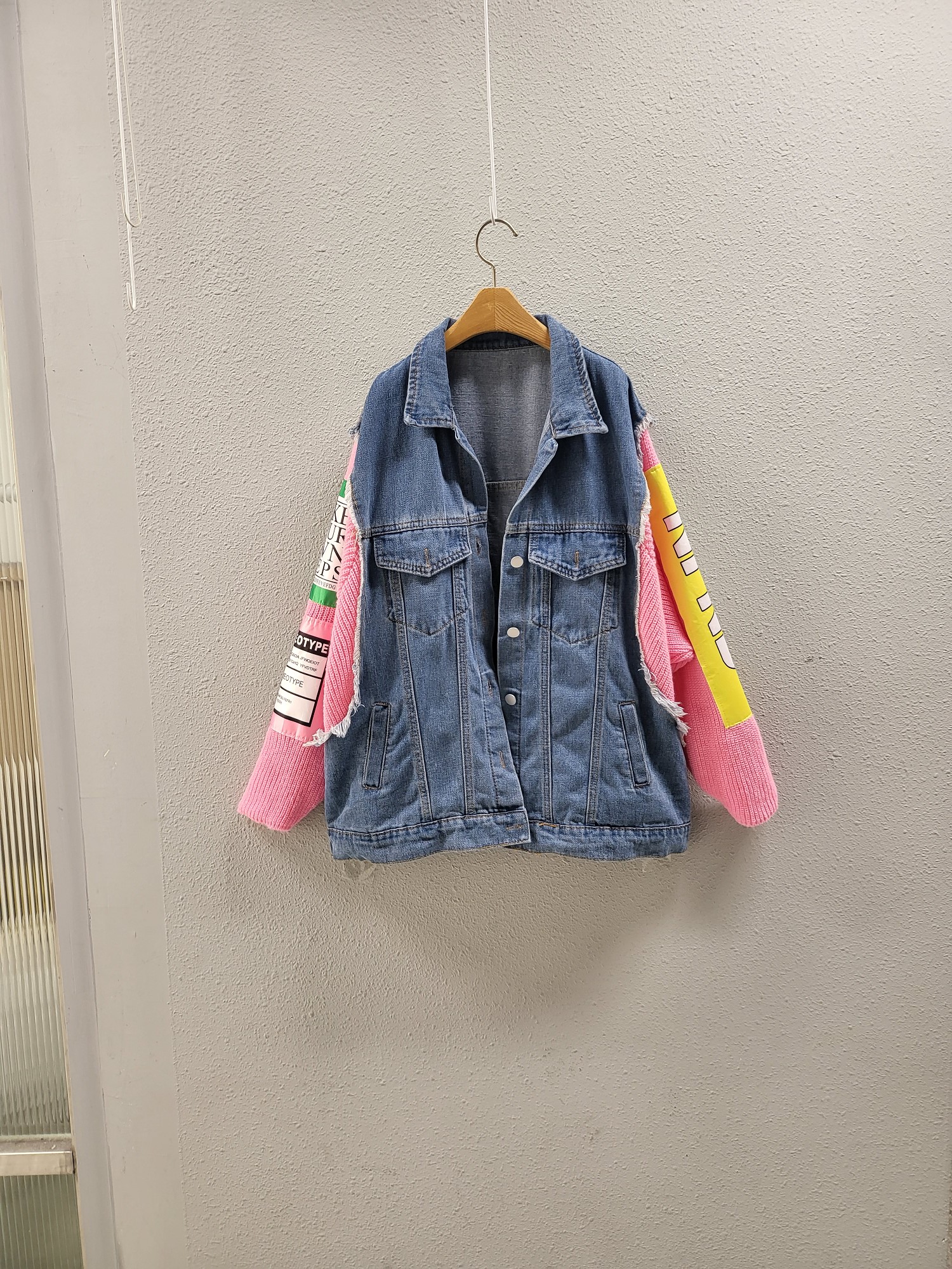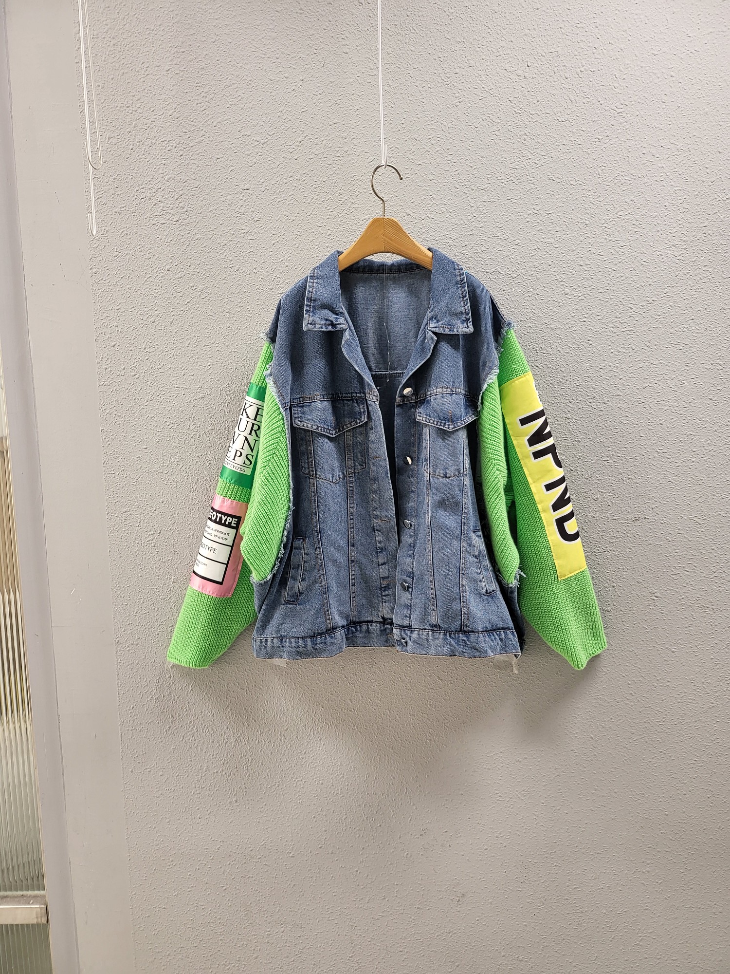 品名:엔조이 배너 니트 배색 데님 자켓 ◎※☞颜色:그린, 핑크 ◎※☞尺寸:FREE ◎※☞材质:纯棉 100% ◎※☞注意事项:只能干洗,只能手洗,不能手洗,机洗,不能使用漂白剂,不能烘干,不能熨烫,不能曲折