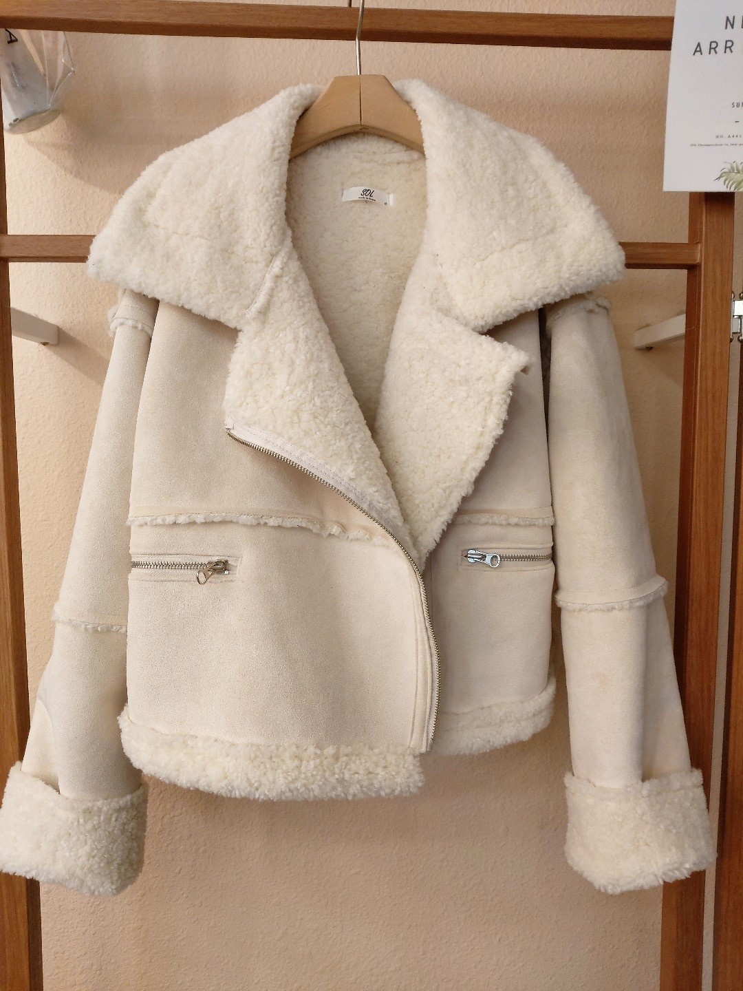 品名:크롭 지퍼무스탕 ◎※☞颜色:블루, 아이보리 ◎※☞尺寸:FREE ◎※☞材质:聚酯 100% 翻译