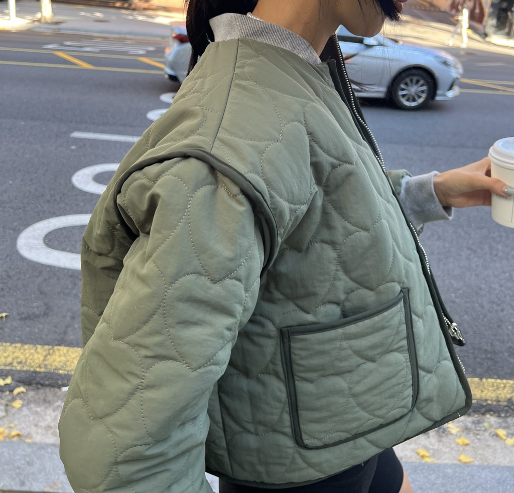 品名:하트 퀼팅jp (리버서블) ◎※☞颜色:차콜, 카키 ◎※☞尺寸:FREE ◎※☞材质:尼龙 100% ◎※☞注意事项:只能干洗,只能手洗,不能手洗,机洗,不能使用漂白剂,不能烘干,不能熨烫,不能曲折 翻译