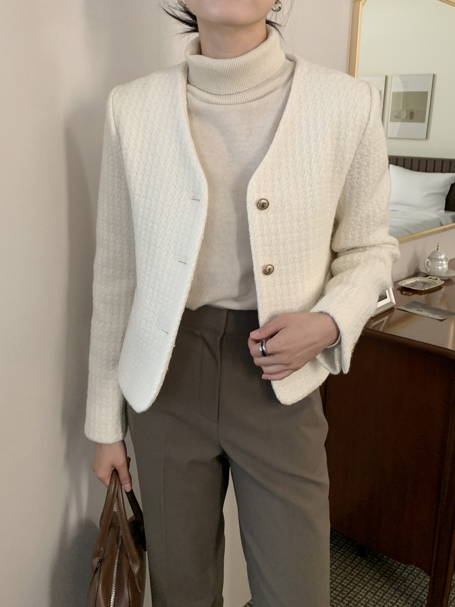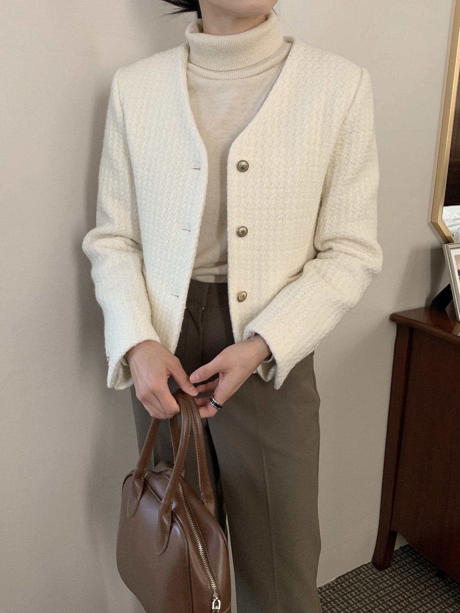 品名:(울100)울트위드브이넥자켓 ◎※☞颜色:블랙, 아이보리 ◎※☞尺寸:FREE ◎※☞材质:羊毛 100% ◎※☞注意事项:只能干洗,只能手洗,不能手洗,机洗,不能使用漂白剂,不能烘干,不能熨烫,不能曲折 翻译