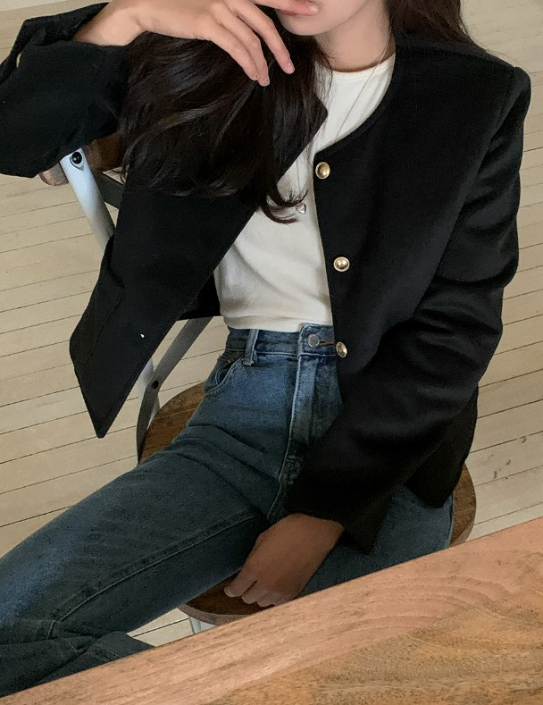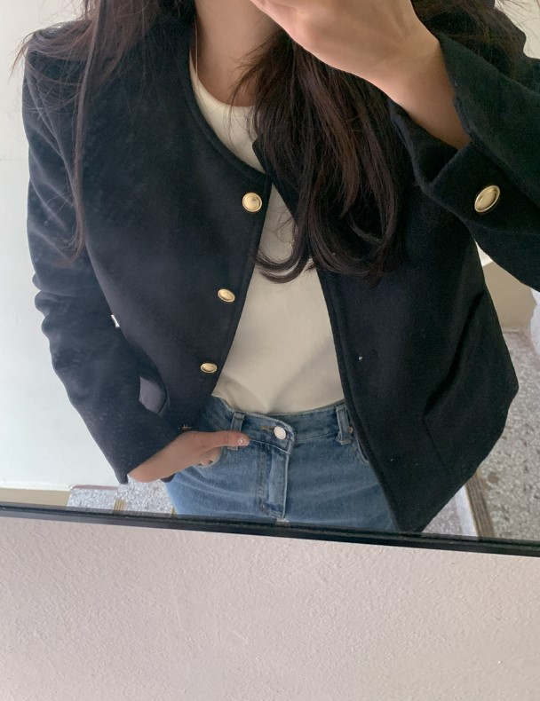 品名:하나JK(2온스누빔 금장단추 텐셀 노카라 울 자켓) ◎※☞颜色:블랙, 아이보리 ◎※☞尺寸:FREE ◎※☞材质:天丝 80%,羊毛 20% ◎※☞注意事项:只能干洗,只能手洗,不能手洗,机洗,不能使用漂白剂,不能烘干,不能熨烫,不能曲折