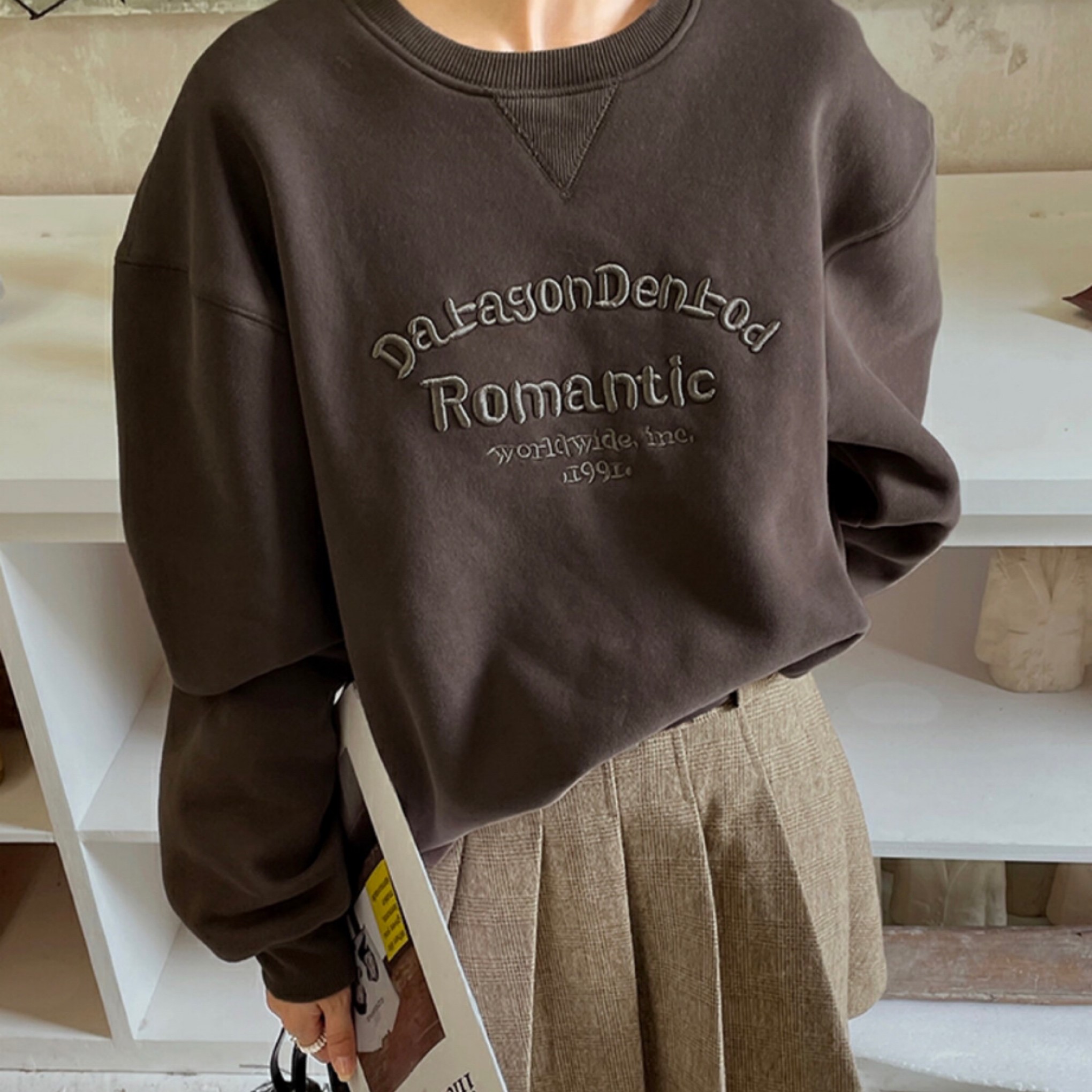 로맨틱 기모 맨투맨(오버핏