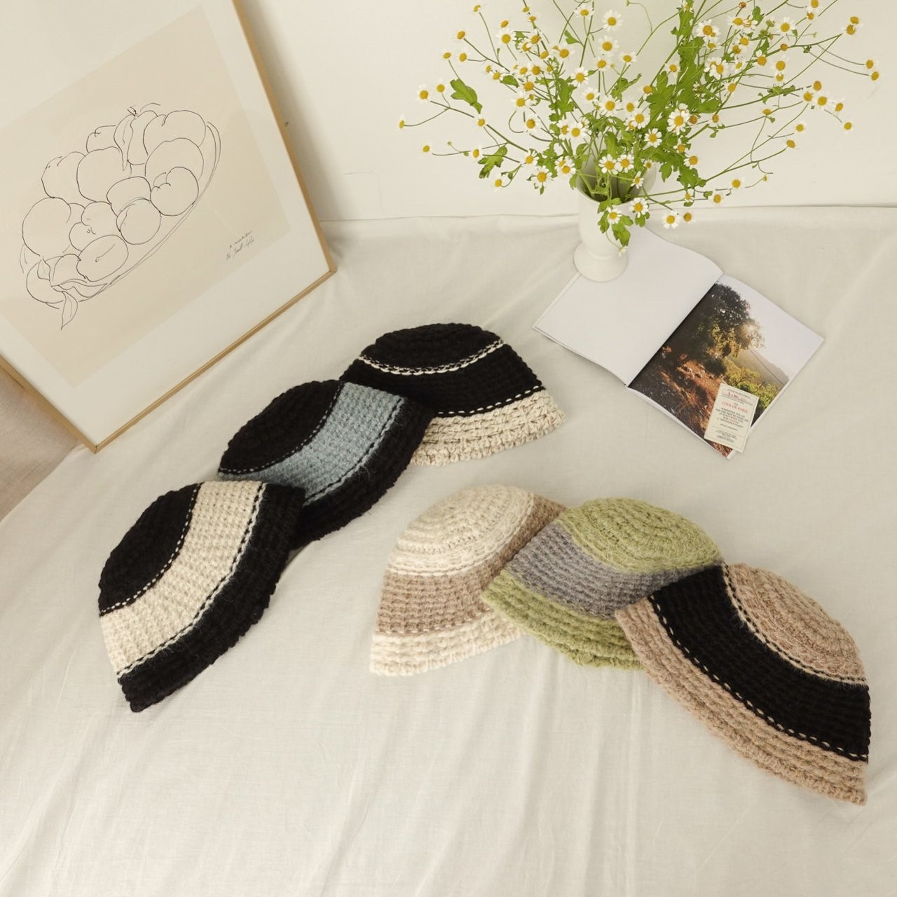 品名:BH924 알파카 배색 라인 버킷햇 ◎※☞颜色:민트, 베이지, 블랙, 스카이, 아이보리, 올블랙 ◎※☞尺寸:F ◎※☞材质:腈纶 30%,尼龙 45%,알파카울 25% 翻译