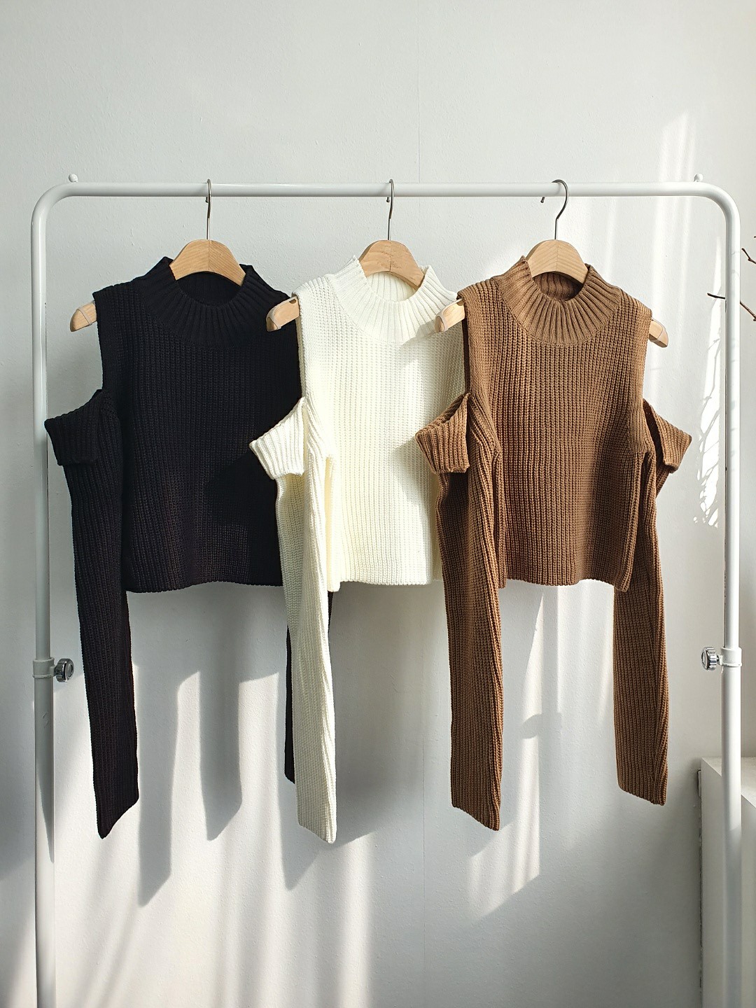 品名:时尚肩部挖洞露肩短款毛衣 ◎※☞颜色:브라운, 블랙, 아이보리 ◎※☞尺寸:FREE ◎※☞材质:腈纶 100% ◎※☞注意事项:只能干洗,只能手洗,不能手洗,机洗,不能使用漂白剂,不能烘干,不能熨烫,不能曲折