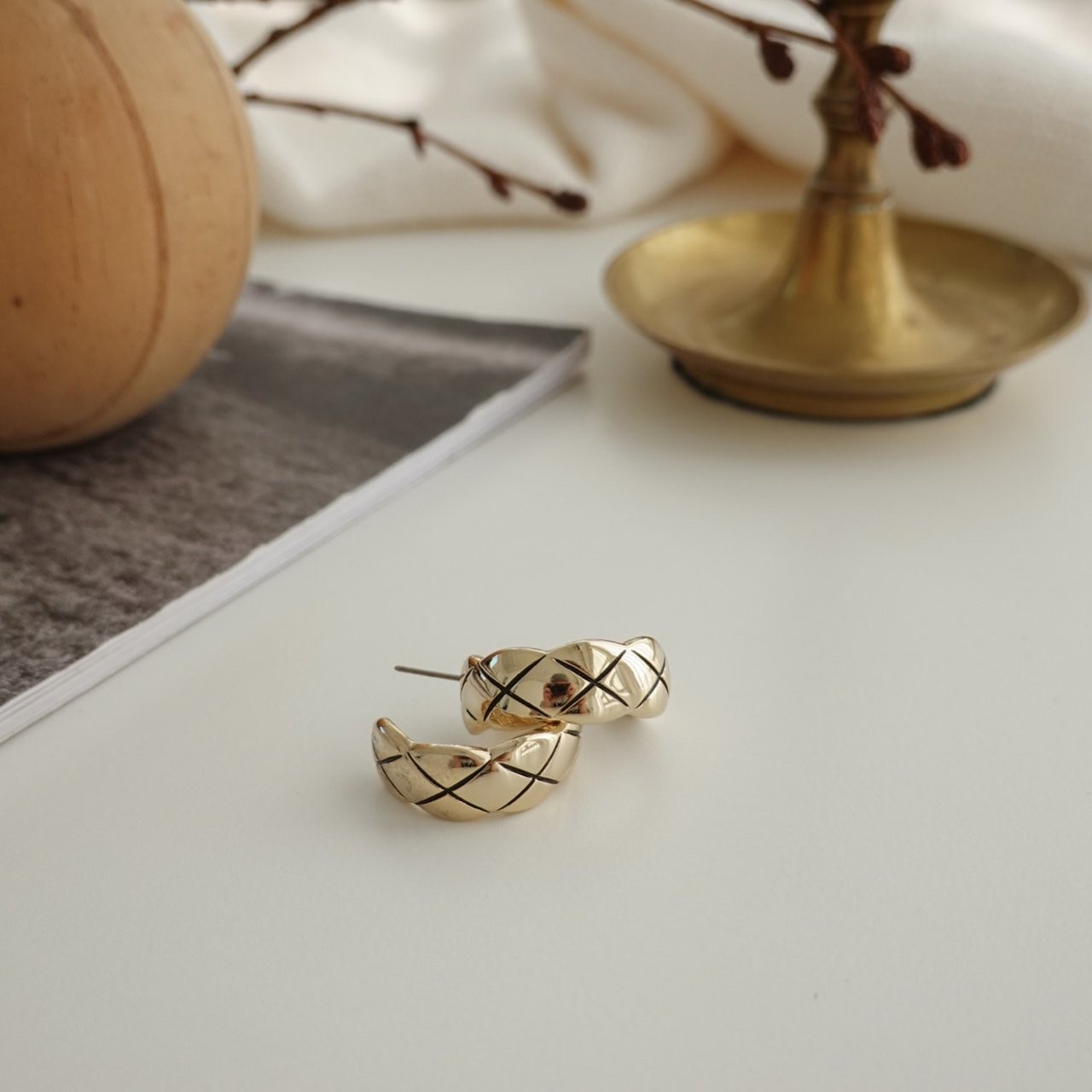 品名:E1871 퀼팅 귀걸이 ◎※☞颜色:골드 ◎※☞尺寸:FREE ◎※☞材质:镀金 0% 翻译
