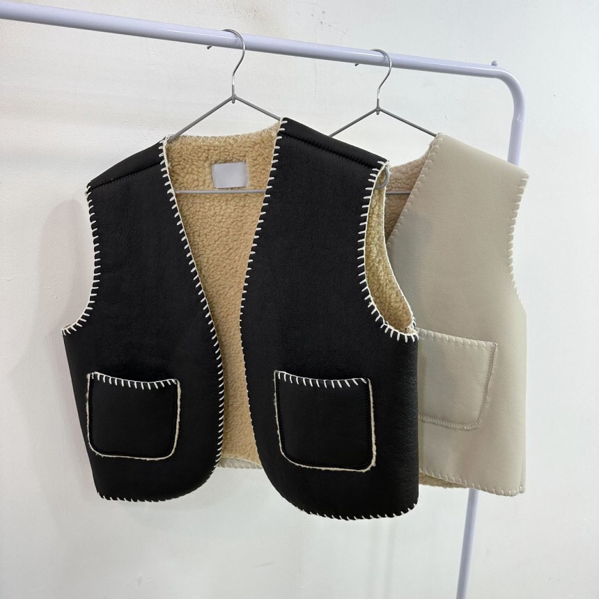 品名:스티치 무스탕조끼 ◎※☞颜色:검정, 아이 ◎※☞尺寸:FREE ◎※☞材质:聚氨酯 100% 翻译