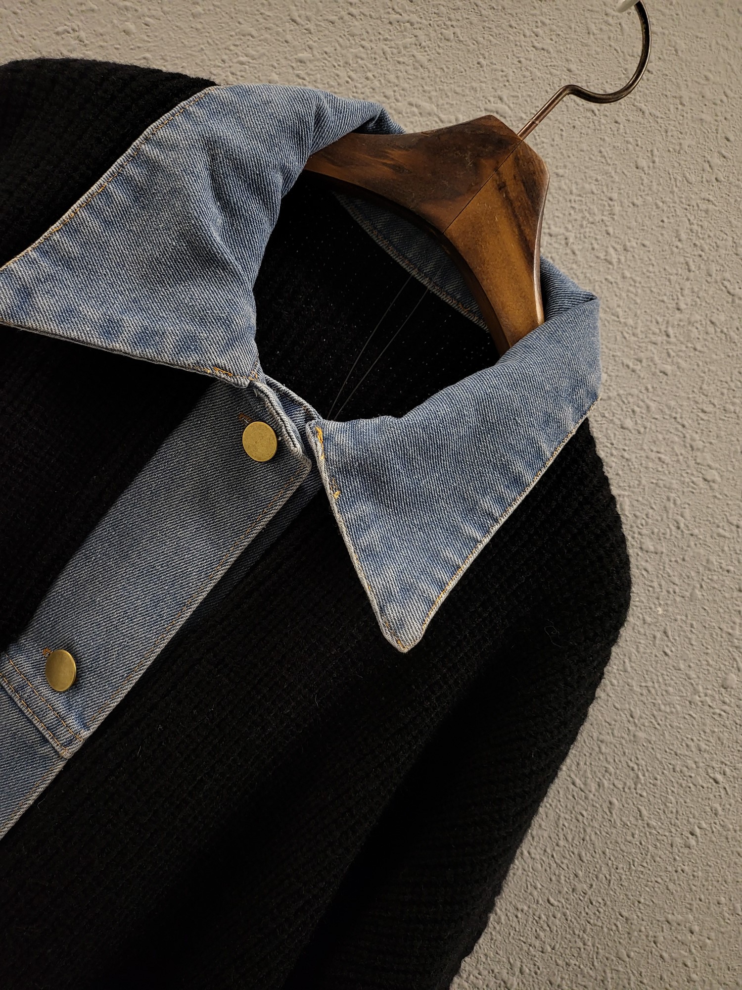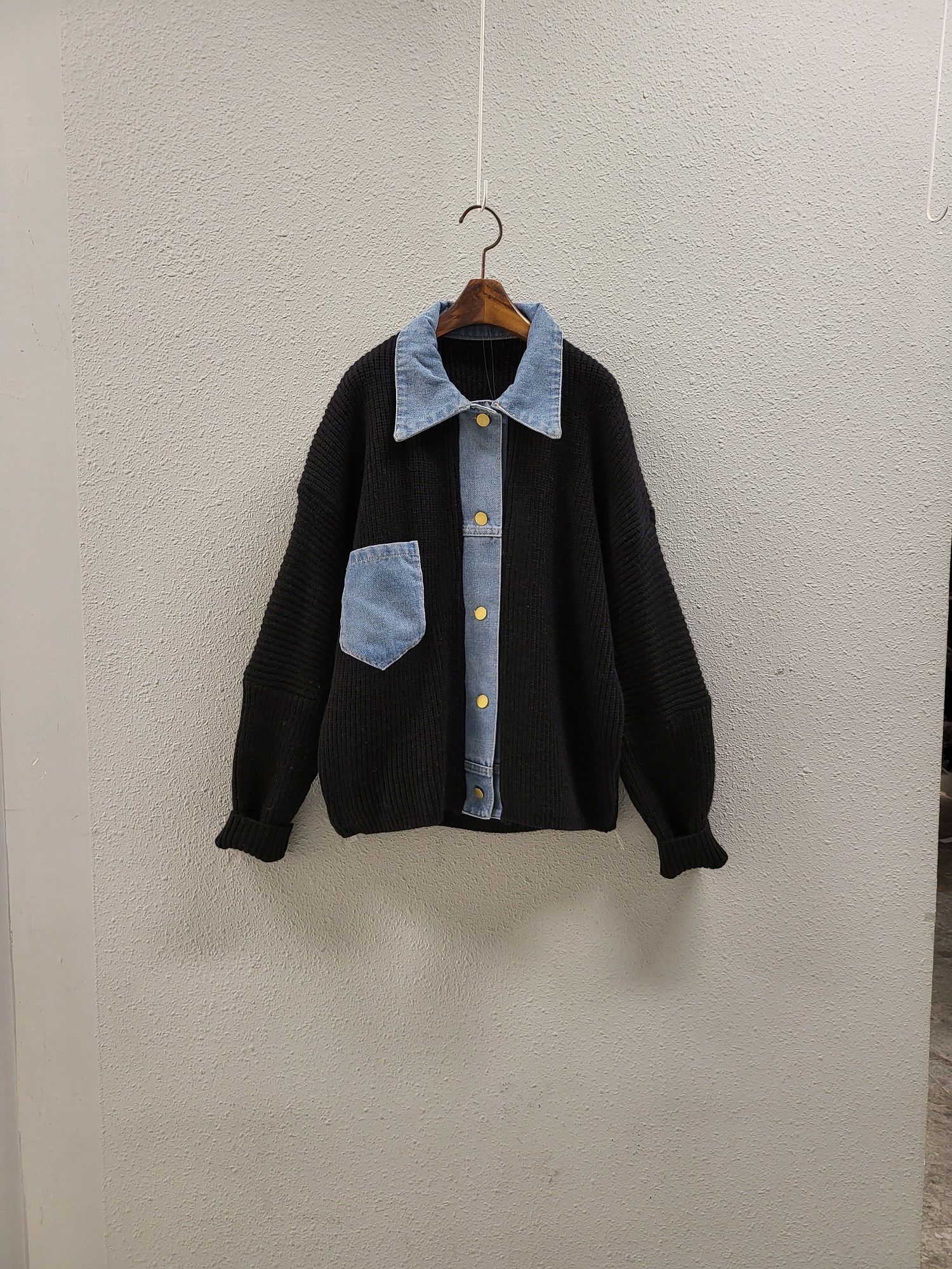 品名:포인트 데님 배색 모던 니트 자켓 ◎※☞颜色:그레이, 베이지, 블랙 ◎※☞尺寸:FREE ◎※☞材质:腈纶 40%,纯棉 20%,聚酯 40% 翻译