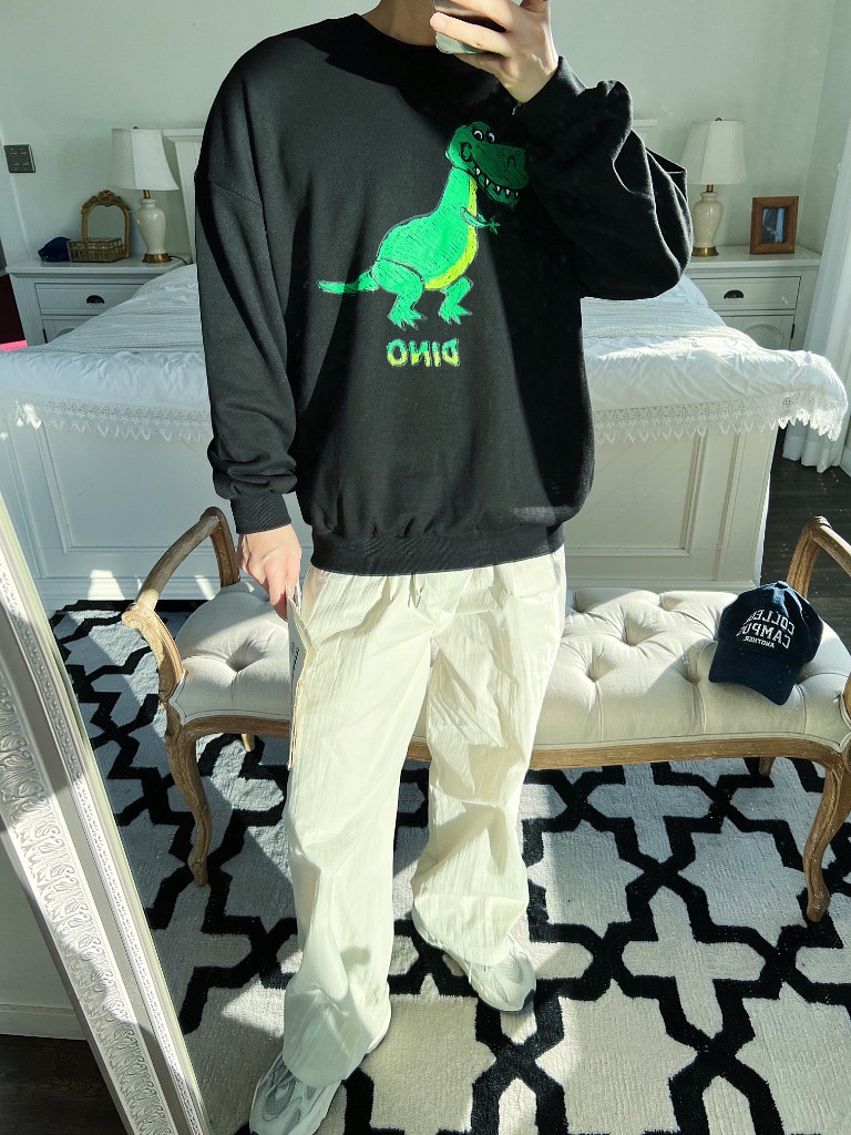 品名:야옹야옹 )기모) 다이노 크레파스 맨투맨 ◎※☞颜色:그레이, 블랙 ◎※☞尺寸:FREE ◎※☞材质:纯棉 100% 翻译