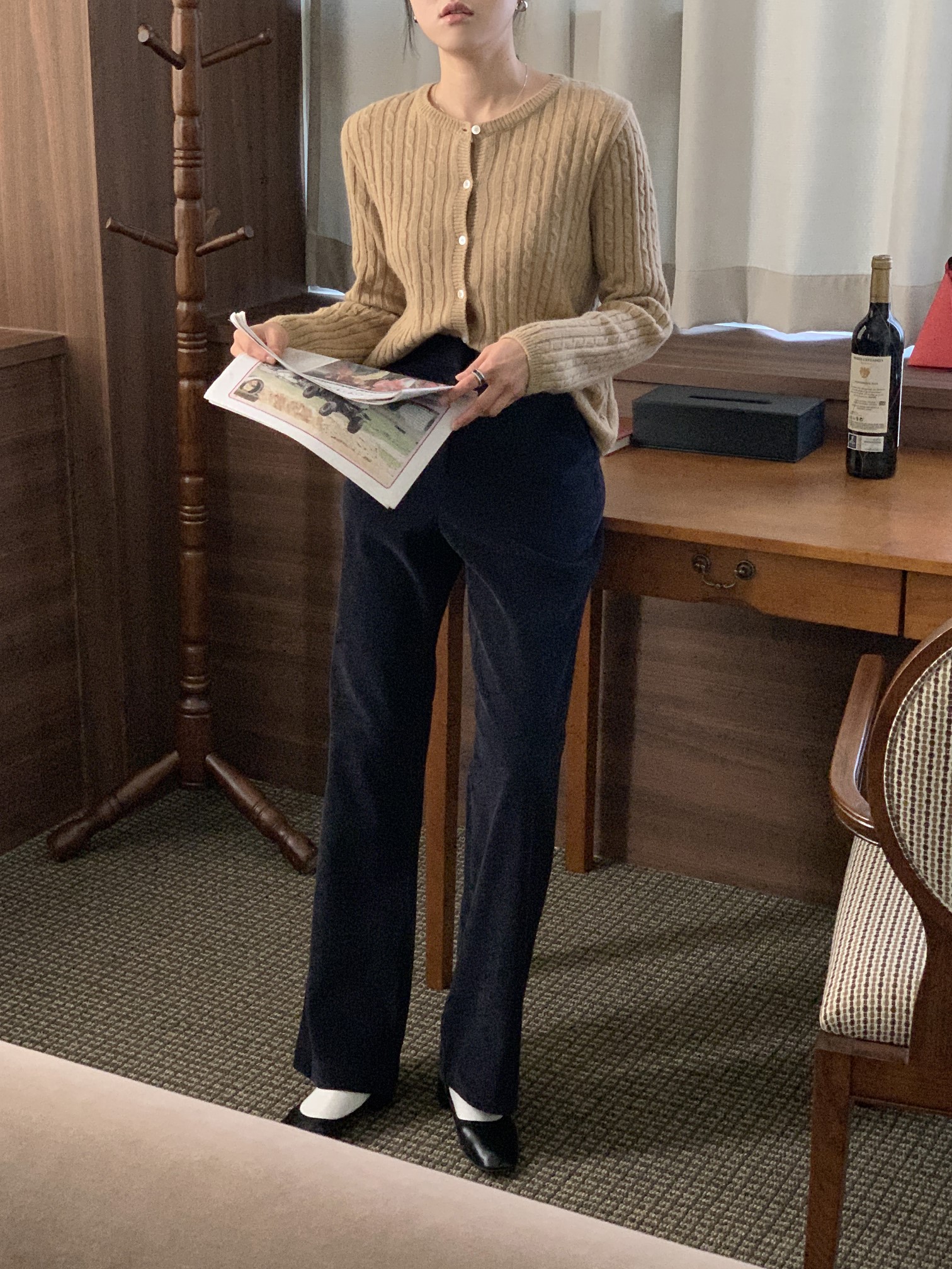 品名:코듀슬림슬랙스 ◎※☞颜色:네이비, 카멜베이지 ◎※☞尺寸:M, S ◎※☞材质:纯棉 100% ◎※☞注意事项:只能干洗,只能手洗,不能手洗,机洗,不能使用漂白剂,不能烘干,不能熨烫,不能曲折 翻译