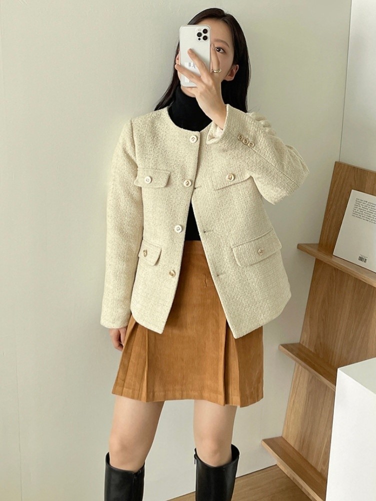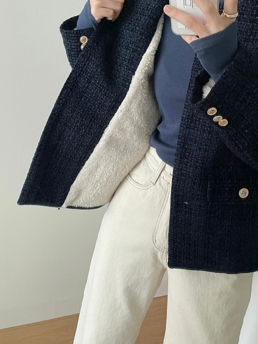 品名:페어트위드JK #안감퍼트위드자켓 ◎※☞颜色:네이비, 버터노랑 ◎※☞尺寸:FREE ◎※☞材质:聚酯 100% 翻译