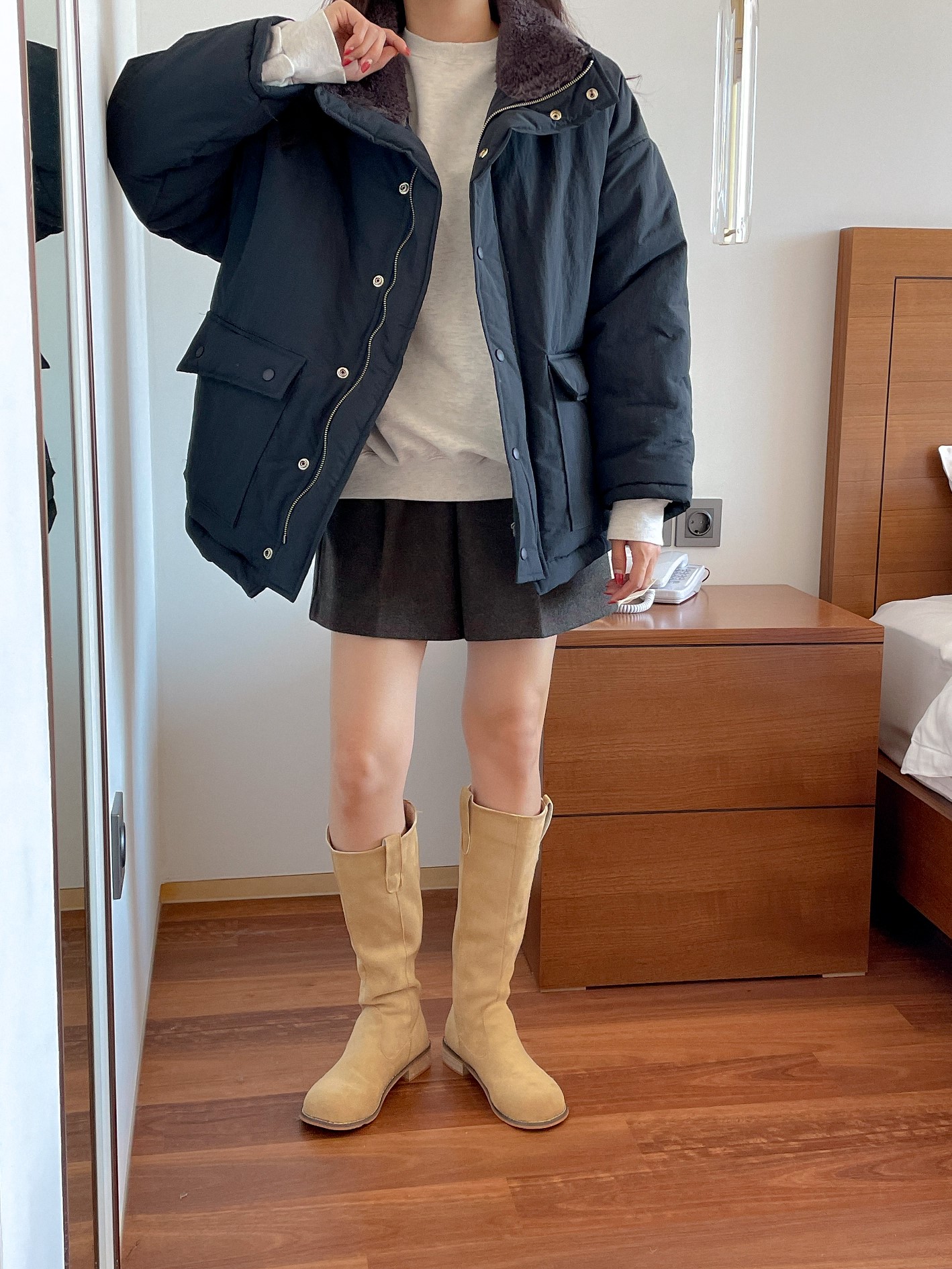 品名:파우더PD #털안감 #패딩 ◎※☞颜色:네이비, 베이지 ◎※☞尺寸:FREE ◎※☞材质:尼龙 100% 翻译