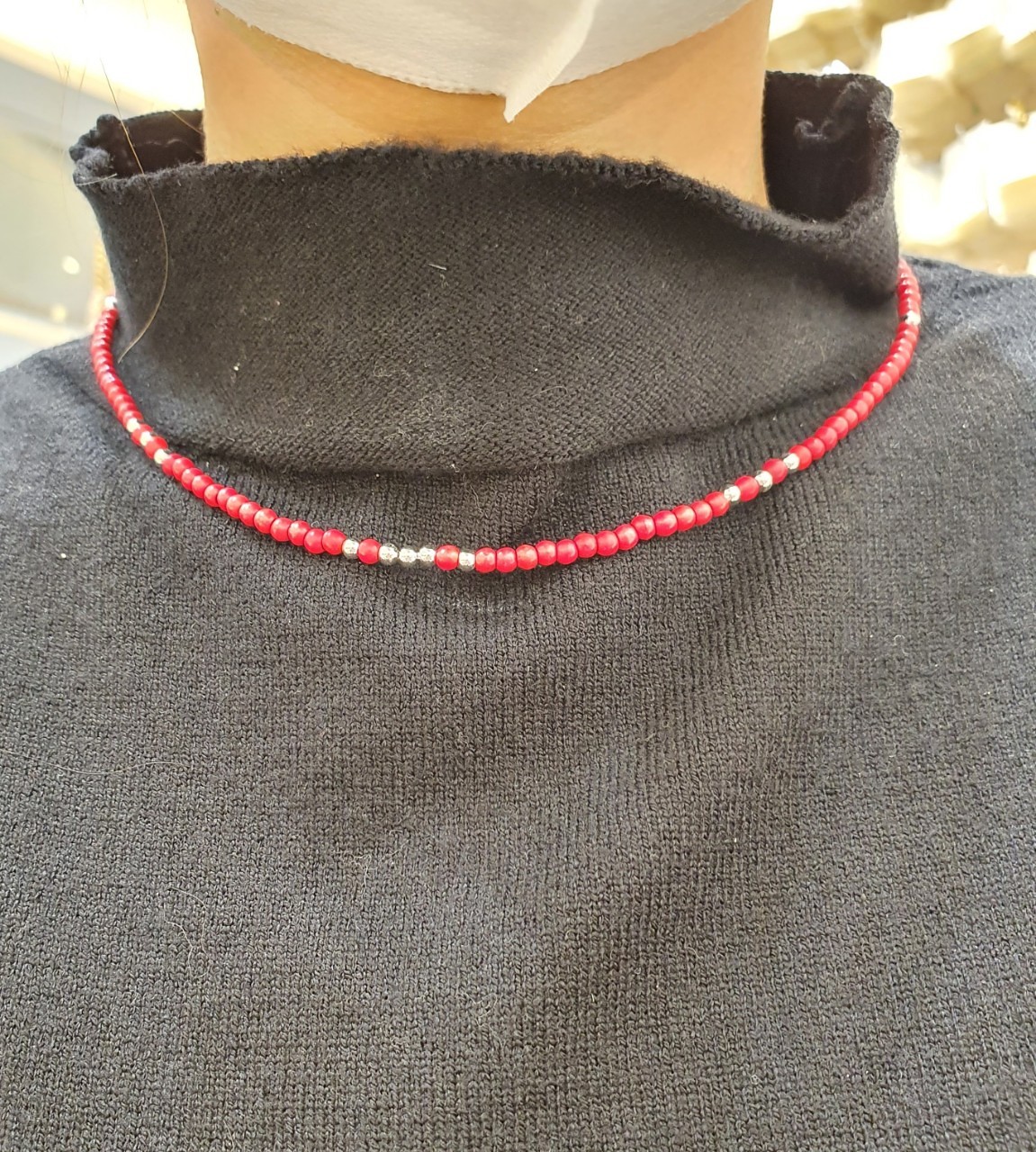 品名:은제품---빨간 은볼 목걸이