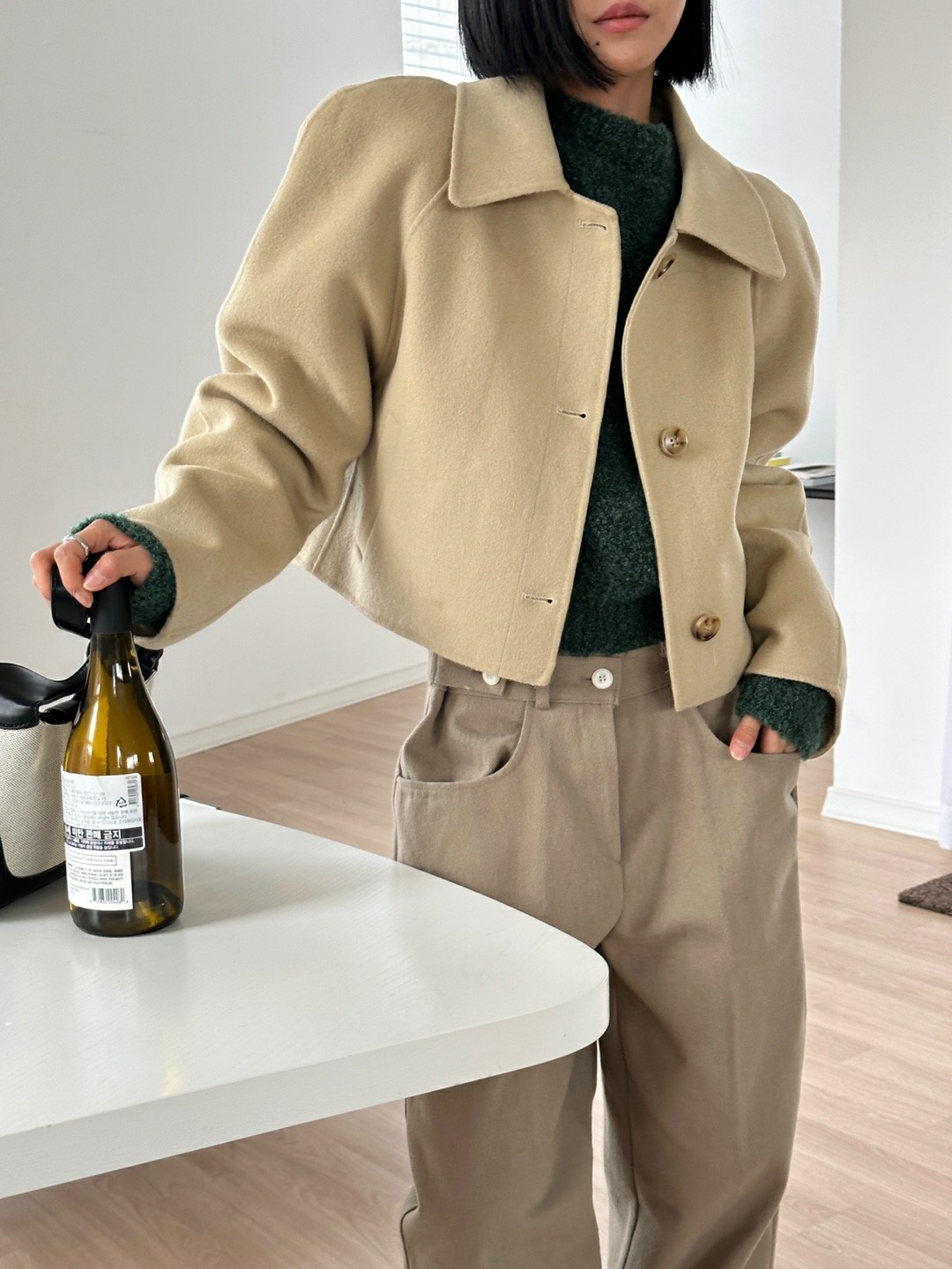 品名:핸드컷 자켓 ◎※☞颜色:검정, 올리브, 크림 ◎※☞尺寸:FREE ◎※☞材质:尼龙 10%,羊毛 90% 翻译