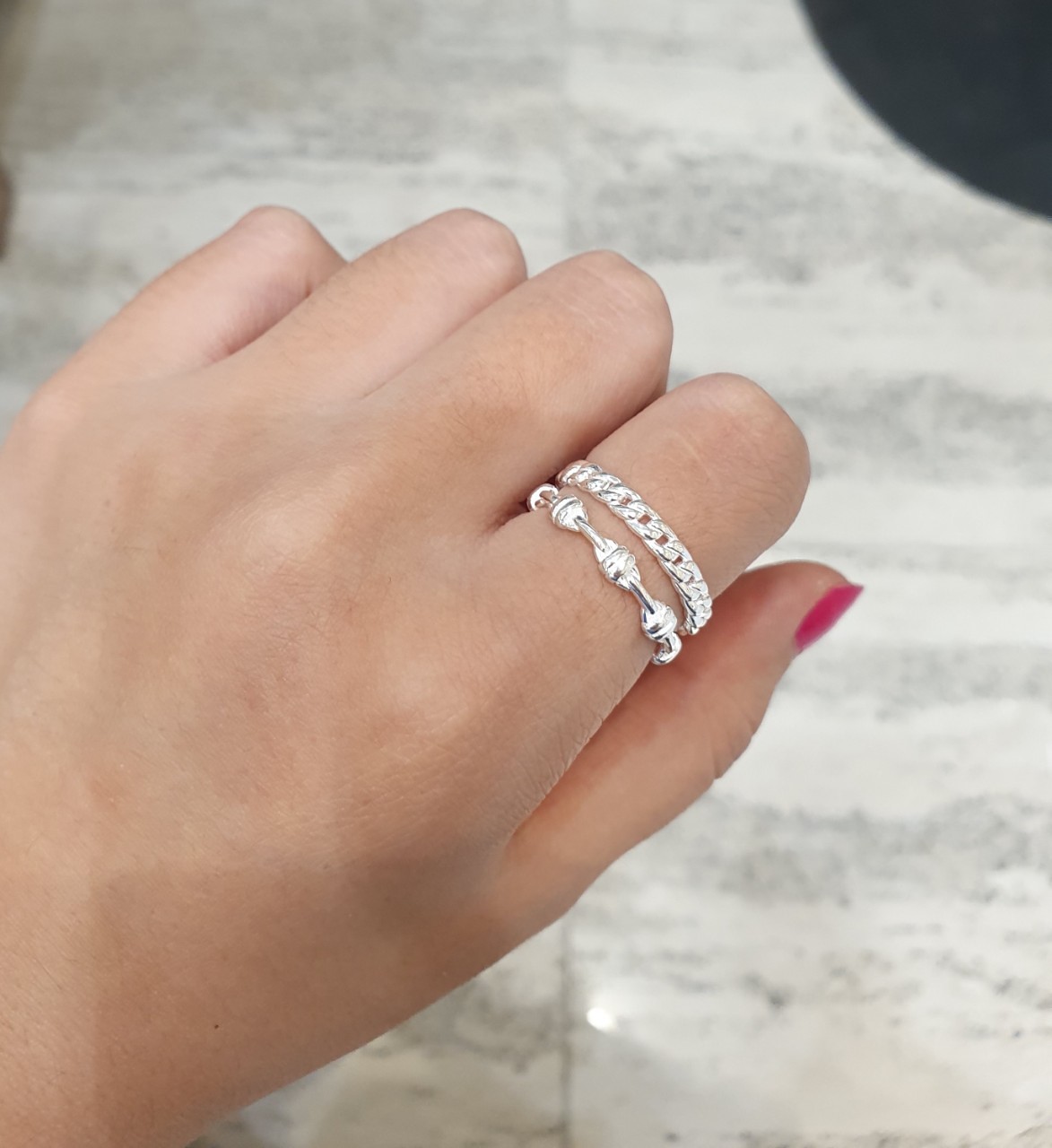 品名:은제품---두줄 체인 반지