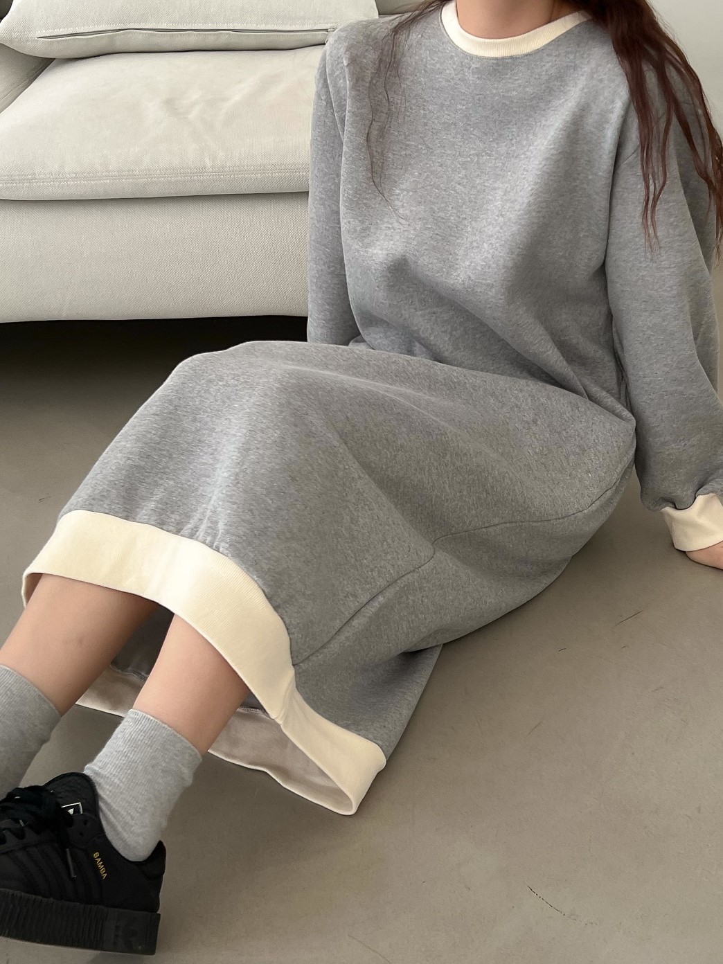 品名:초콜릿기모OPS ◎※☞颜色:그레이, 모카 ◎※☞尺寸:FREE ◎※☞材质:纯棉 100% 翻译