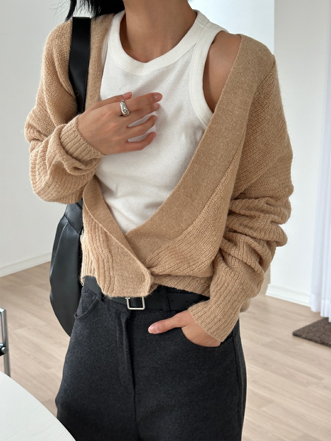 品名:히든스냅 가디건 ◎※☞颜色:검정, 베이지, 소라, 아이 ◎※☞尺寸:FREE ◎※☞材质:尼龙 10%,羊驼毛 40%,羊毛 40%,모헤어 10% 翻译