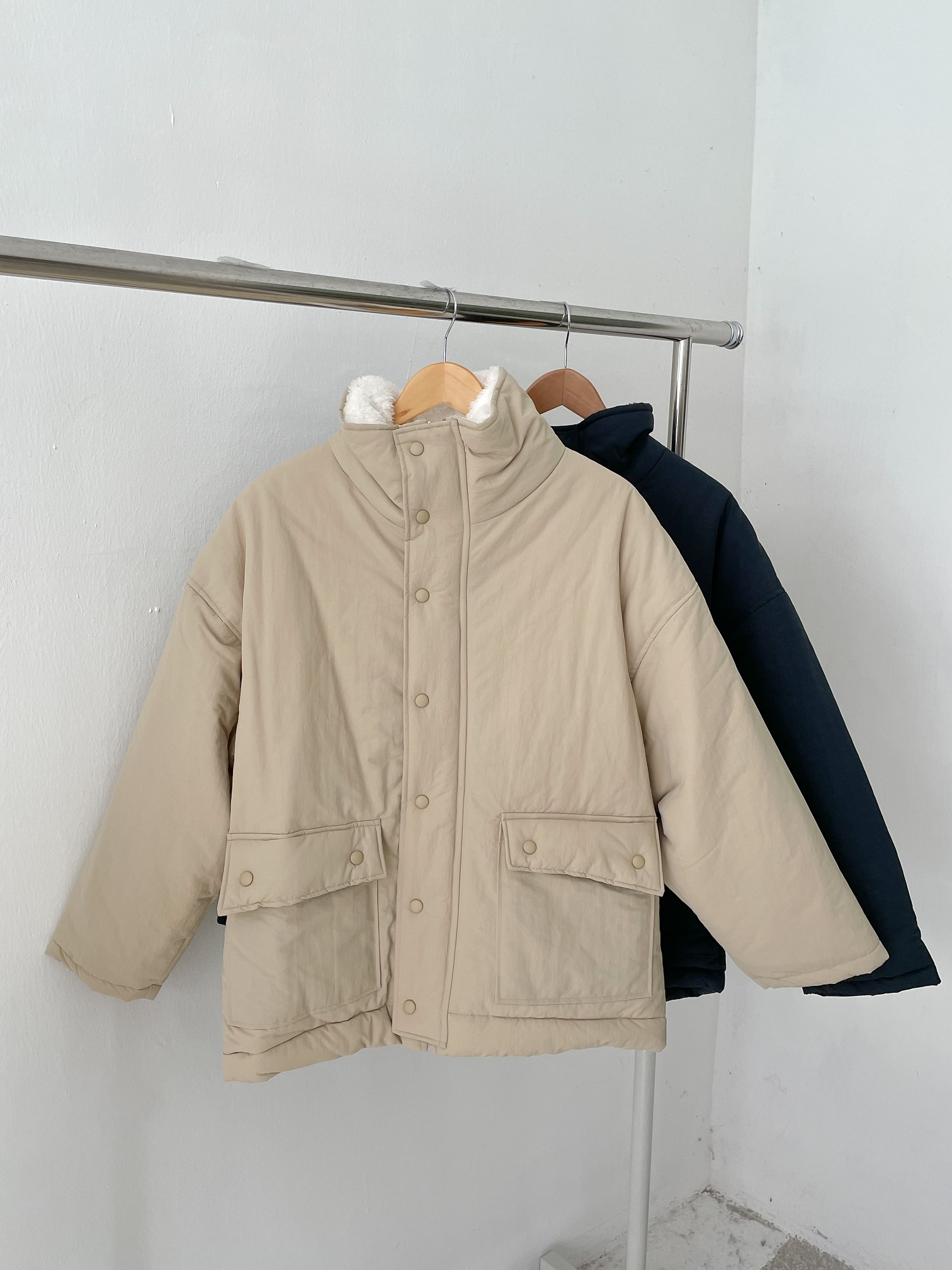 品名:파우더PD #털안감 #패딩 ◎※☞颜色:네이비, 베이지 ◎※☞尺寸:FREE ◎※☞材质:尼龙 100% 翻译