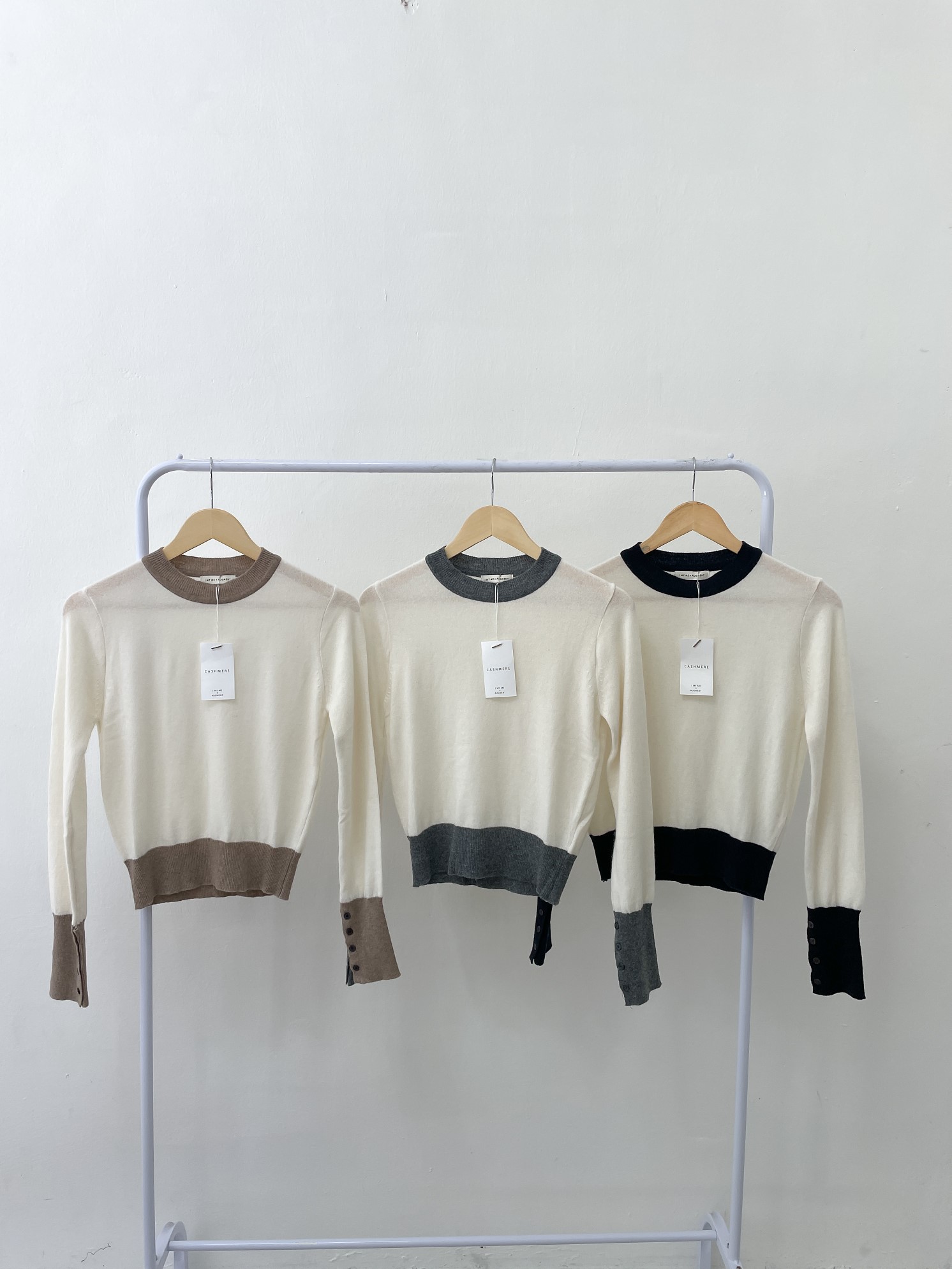 品名:캐시바닐라KN #캐시미어배색니트 ◎※☞颜色:네이비, 다크그레이, 베이지 ◎※☞尺寸:FREE ◎※☞材质:山羊绒 2%,尼龙 50%,羊毛 48% 翻译
