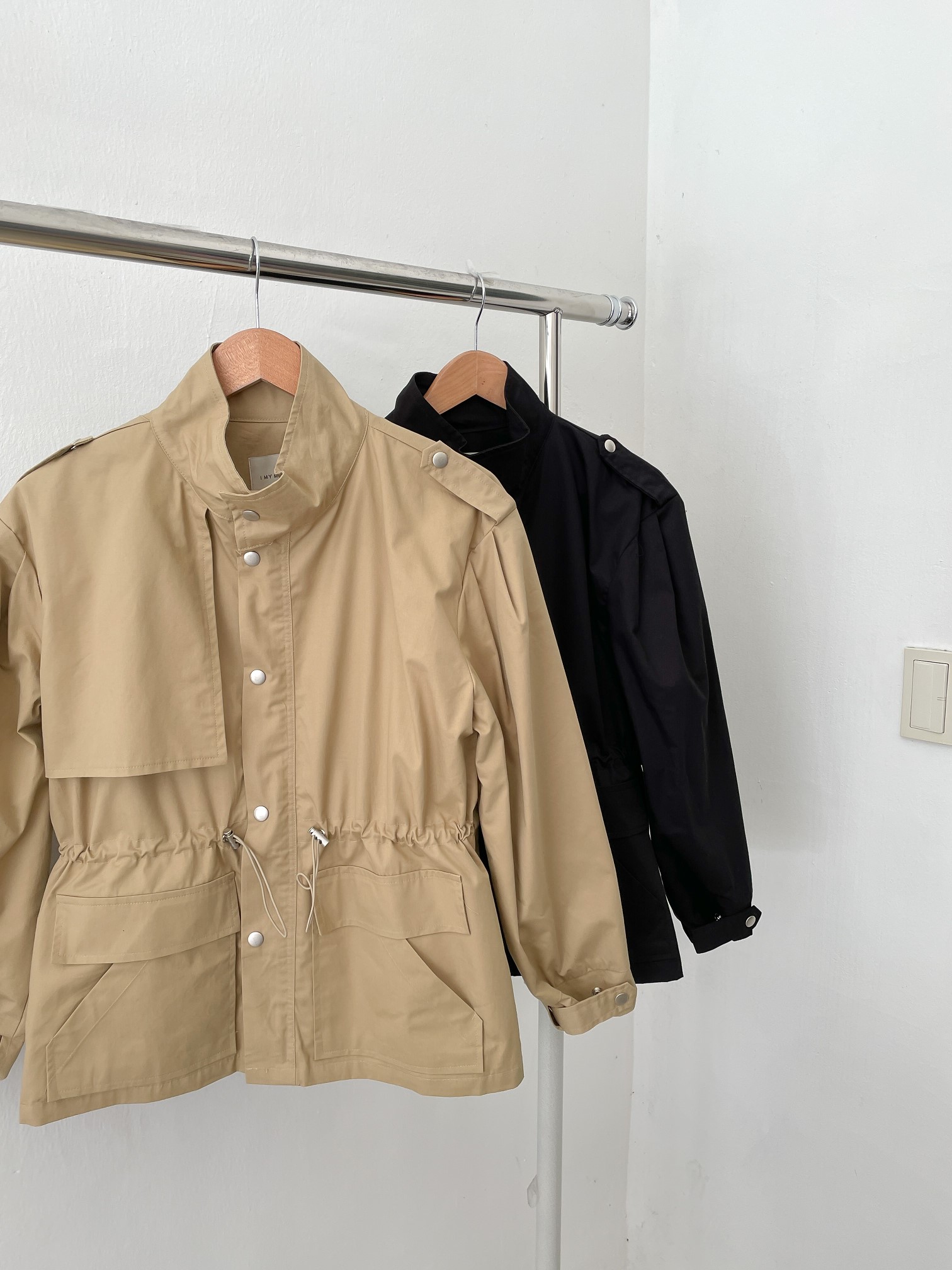 品名:퍼프야상JP #야상점퍼 #허리스트링 #스트링점퍼 ◎※☞颜色:베이지, 블랙 ◎※☞尺寸:FREE ◎※☞材质:纯棉 100% 翻译