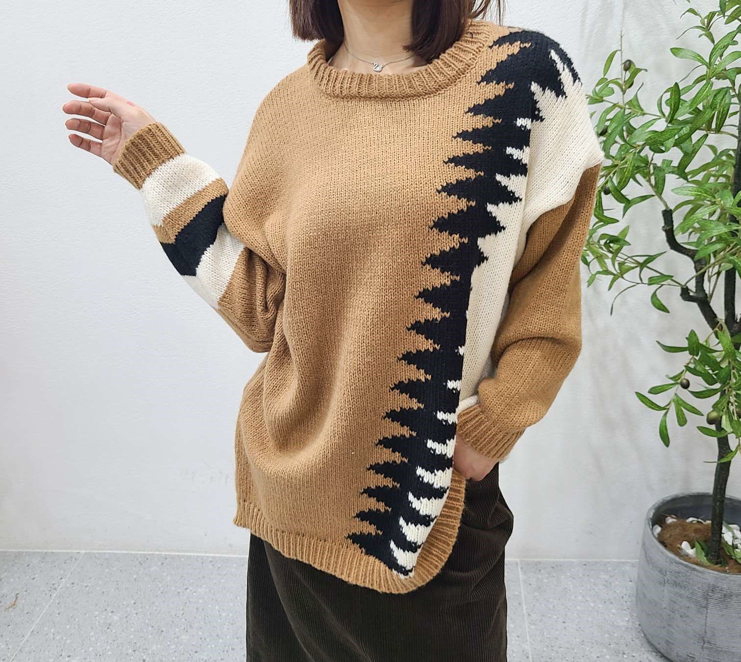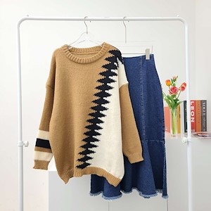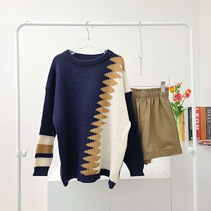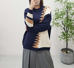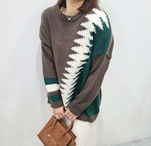 지그재그배색롱니트