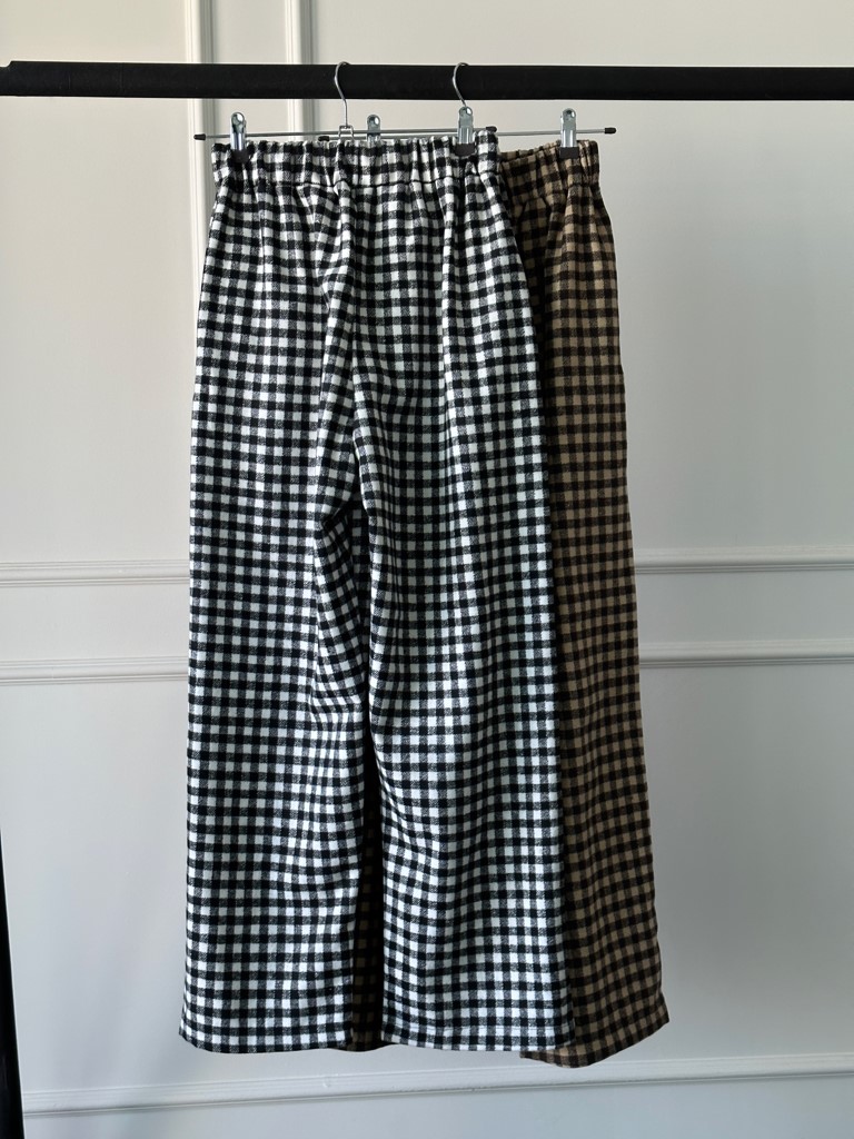 品名:큐브 체크 밴딩 PT ◎※☞颜色:브라운, 블랙 ◎※☞尺寸:FREE ◎※☞材质:聚酯 100% 翻译