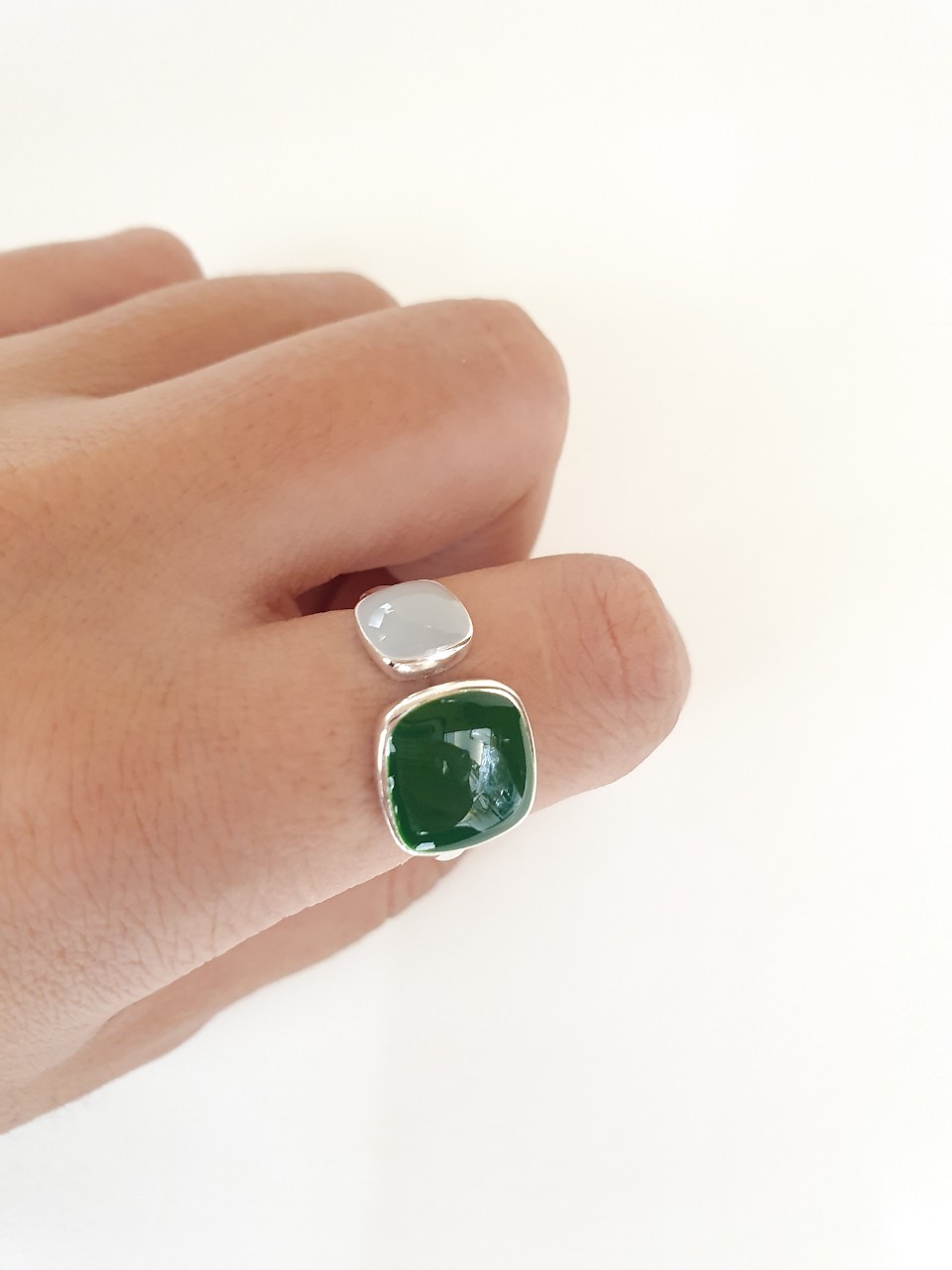 品名:은제품---그린 네모 반지