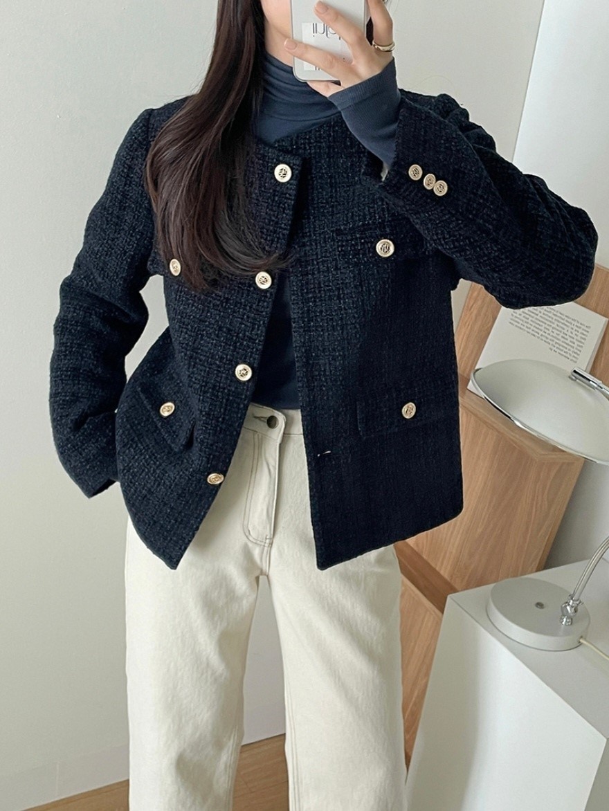 品名:페어트위드JK #안감보아털 #트위드자켓 ◎※☞颜色:네이비, 버터노랑 ◎※☞尺寸:FREE ◎※☞材质:聚酯 100% 翻译