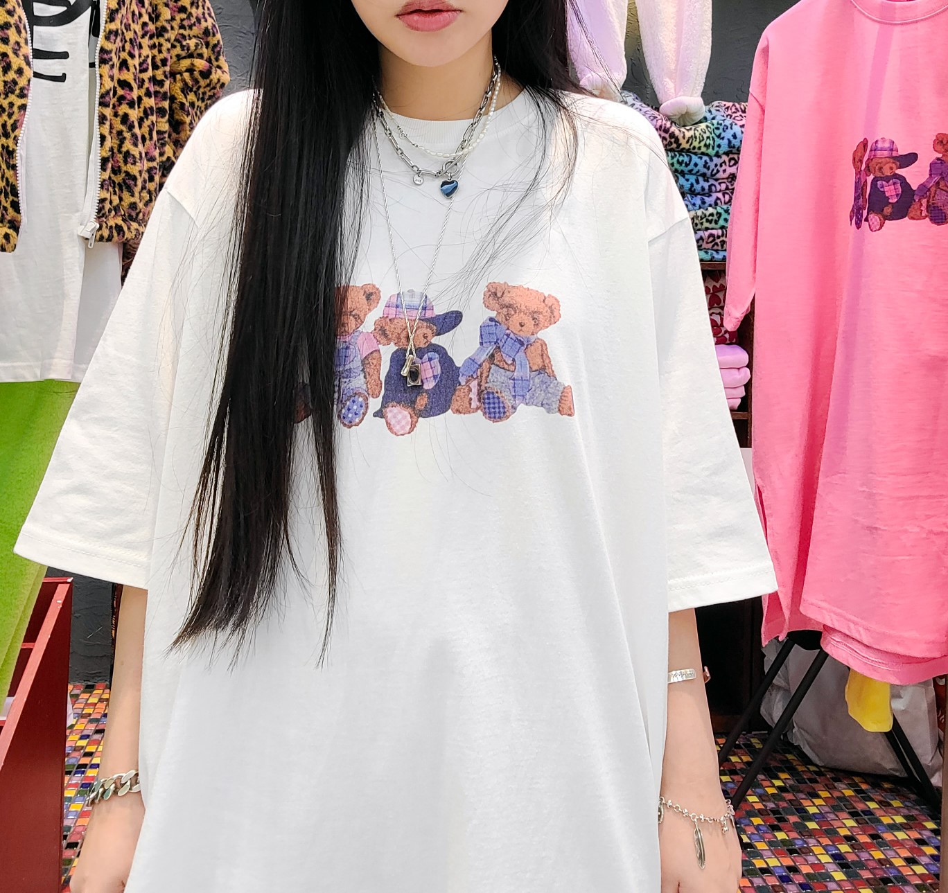 品名:곰세마리티 #박스티오버핏빅사이즈반팔티곰돌이베어티 ◎※☞颜色:핑크, 화이트 ◎※☞尺寸:FREE ◎※☞材质:纯棉 100% 翻译