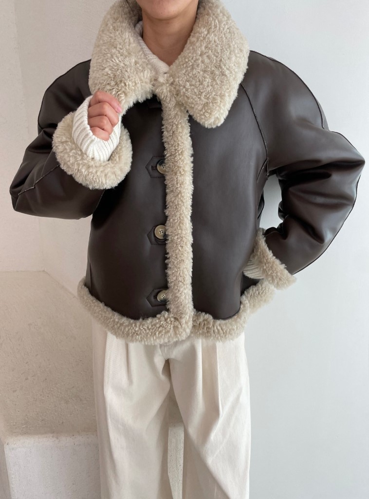 品名:레글런 숏 무스탕 ◎※☞颜色:베이지, 브라운 ◎※☞尺寸:FREE ◎※☞材质:聚氨酯 100% 翻译
