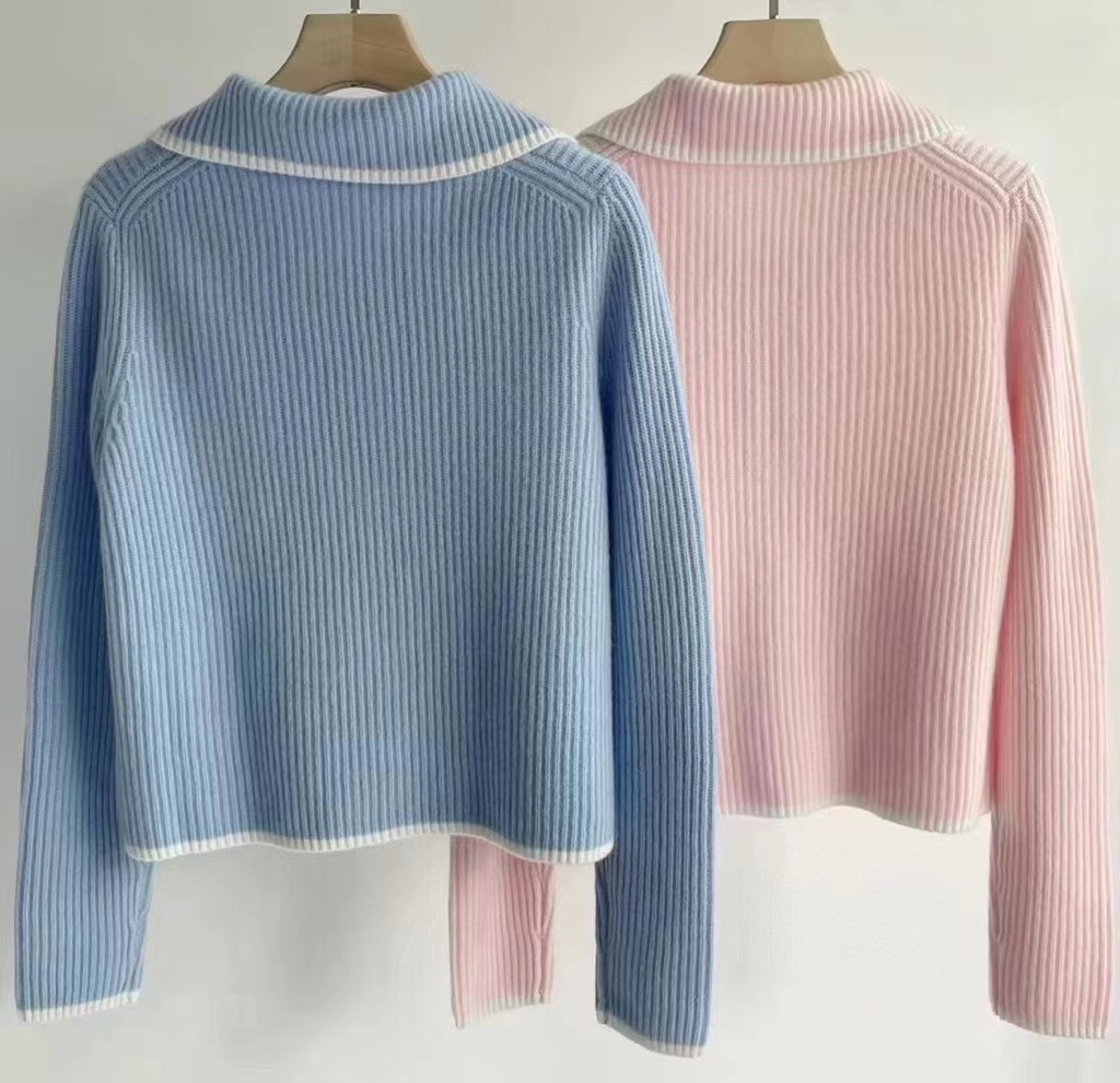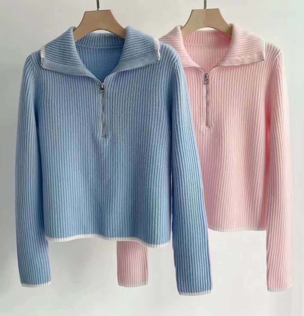 品名:Miu 지퍼 카라 니트 ◎※☞颜色:소라, 핑크 ◎※☞尺寸:FREE ◎※☞材质:羊毛 100% 翻译